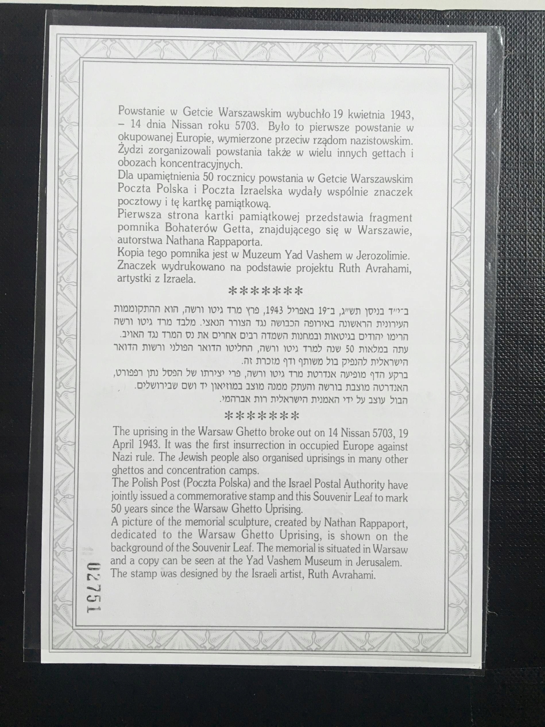 50-ТА РІЧНИЦЯ ЄВРЕЙСЬКОГО ПОВСТАННЯ У ВАРШАВСЬКОМУ ГЕТТО
