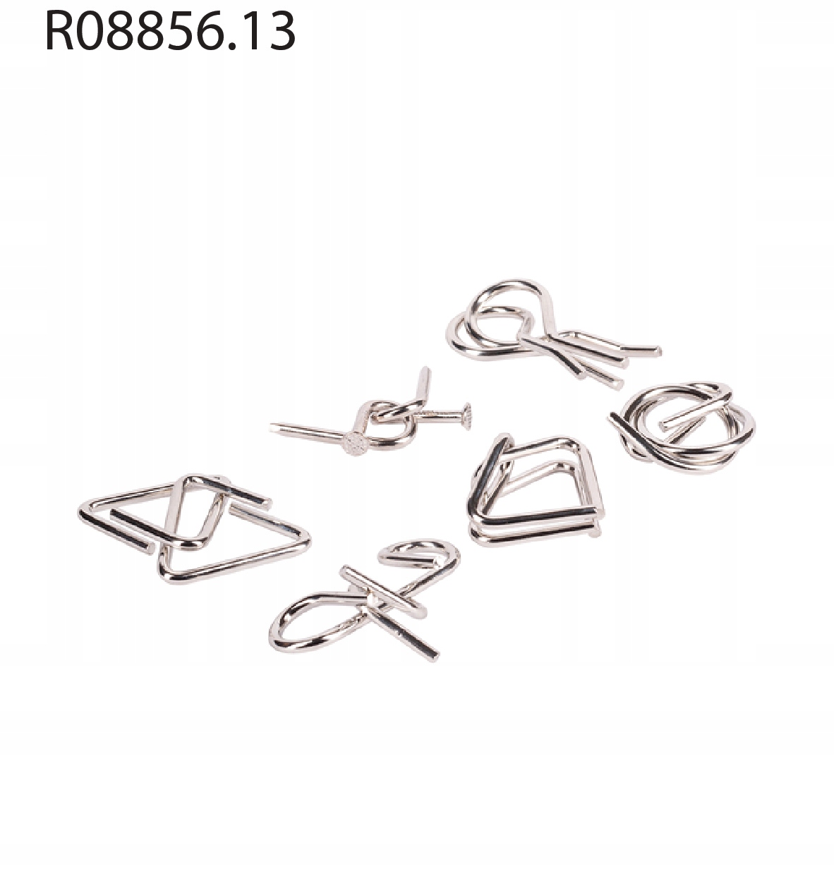 Набор состоит из 6 пар металлических пазлов в деревянной коробке.