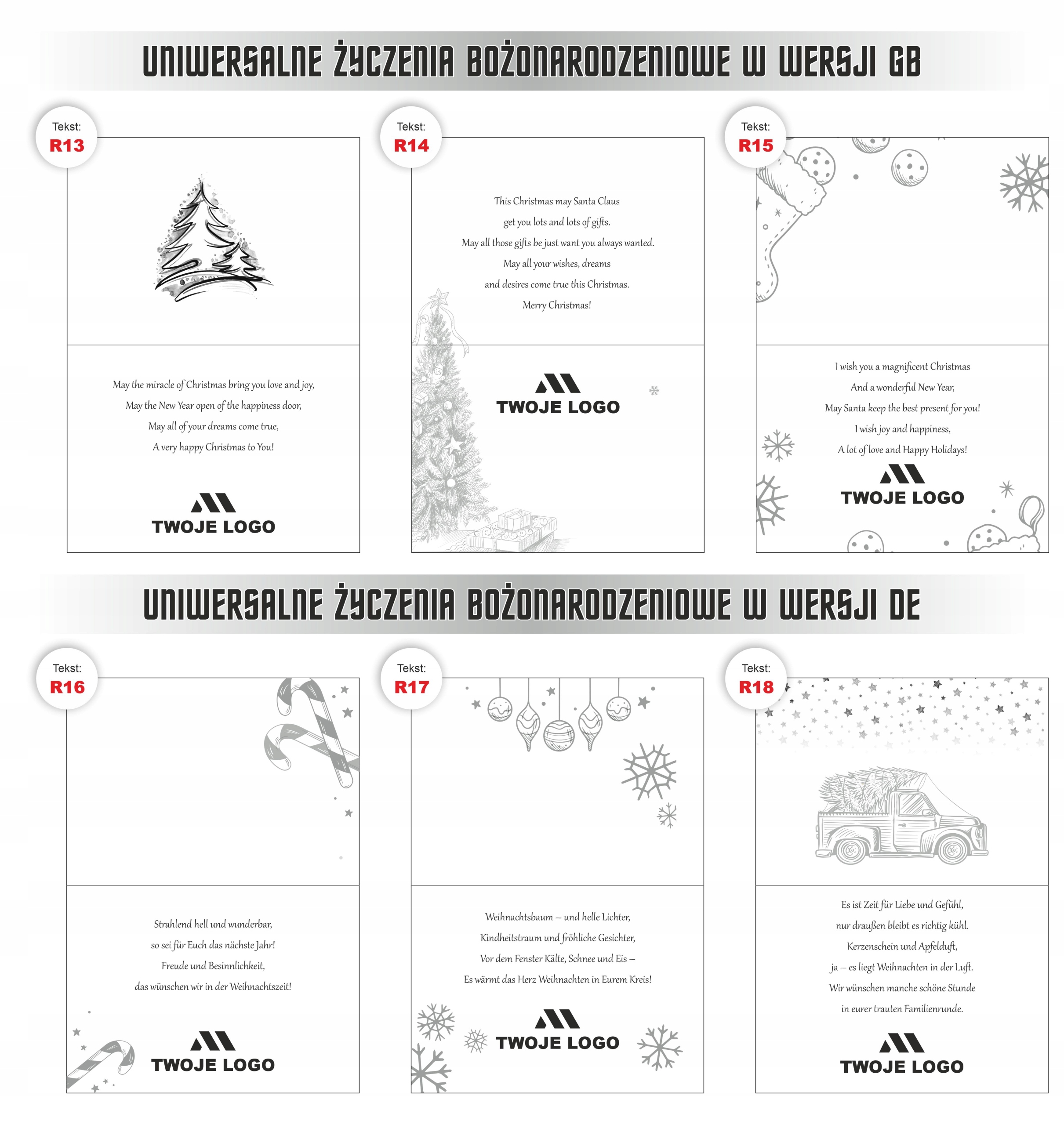 50 РОЖДЕСТВЕНСКИХ ОТКРЫТОК С ЛОГОТИПОМ ИЛИ ПОДПИСЬЮ. В РАЗНЫХ ЯЗЫКОВЫХ ВЕРСИЯХ