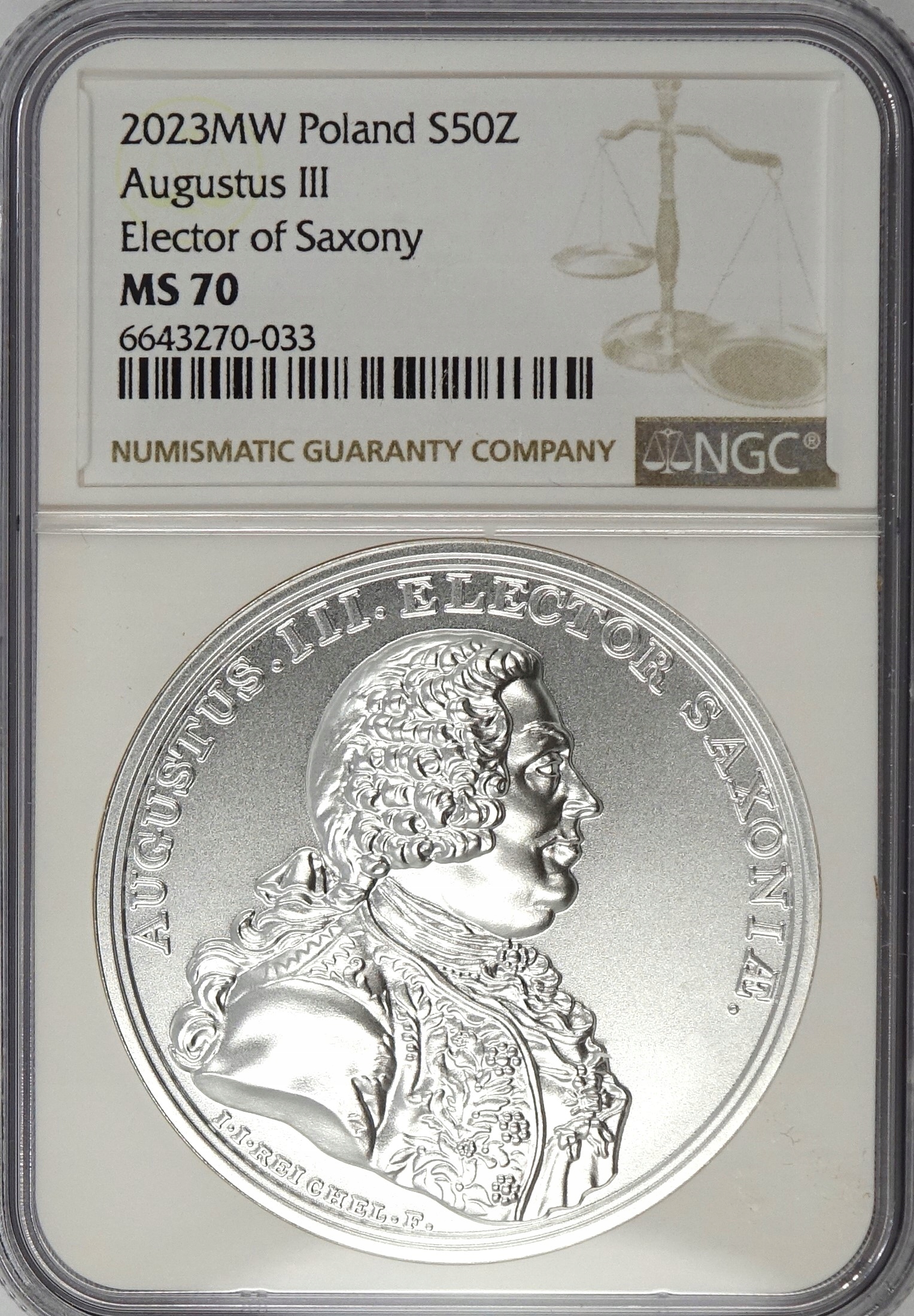 Имя: 50 злотых, 2023 г., август III Сас — NGC MS70 MAX
