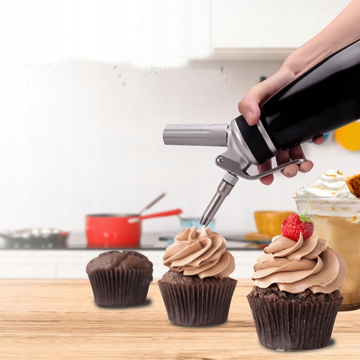 🍰 Деликатесы: Используя сифон для сливок, вы можете приготовить крем, кремы или десерты в мгновение ока, благодаря чему вы сможете усовершенствовать торты и другие десерты. В то же время сифон для взбитых сливок позволяет сохранять сливки свежими в холодильнике до недели.