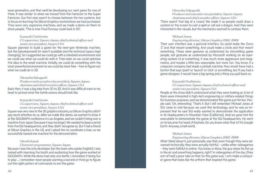 Захватывающее погружение в процесс создания знаменитой ролевой игры для PlayStation. Эта прекрасно оформленная книга, вобравшая в себя более тридцати переплетающихся голосов, предлагает беспрецедентное понимание мастерства и амбиций уважаемой ролевой игры для PlayStation. Эта физическая версия, расширенная адаптация знаменитой истории Мэтта Леоне, состоящей из 27 000 слов, опубликованной онлайн издательством Polygon в январе 2017 года, была разработана Рэйчел Далтон и включает шестнадцать специально заказанных иллюстраций воробьев, восемь новых отдельных интервью и предисловие создателя сериала Хиронобу Сакагути.