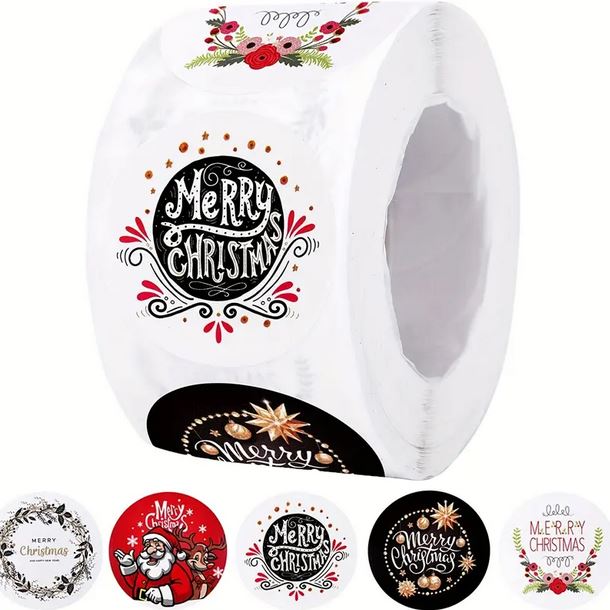 500 ШТ. РОЖДЕСТВЕНСКИХ НАКЛЕЙКОВ В РУЛОНЕ КРУГЛЫЕ НАКЛЕЙКИ