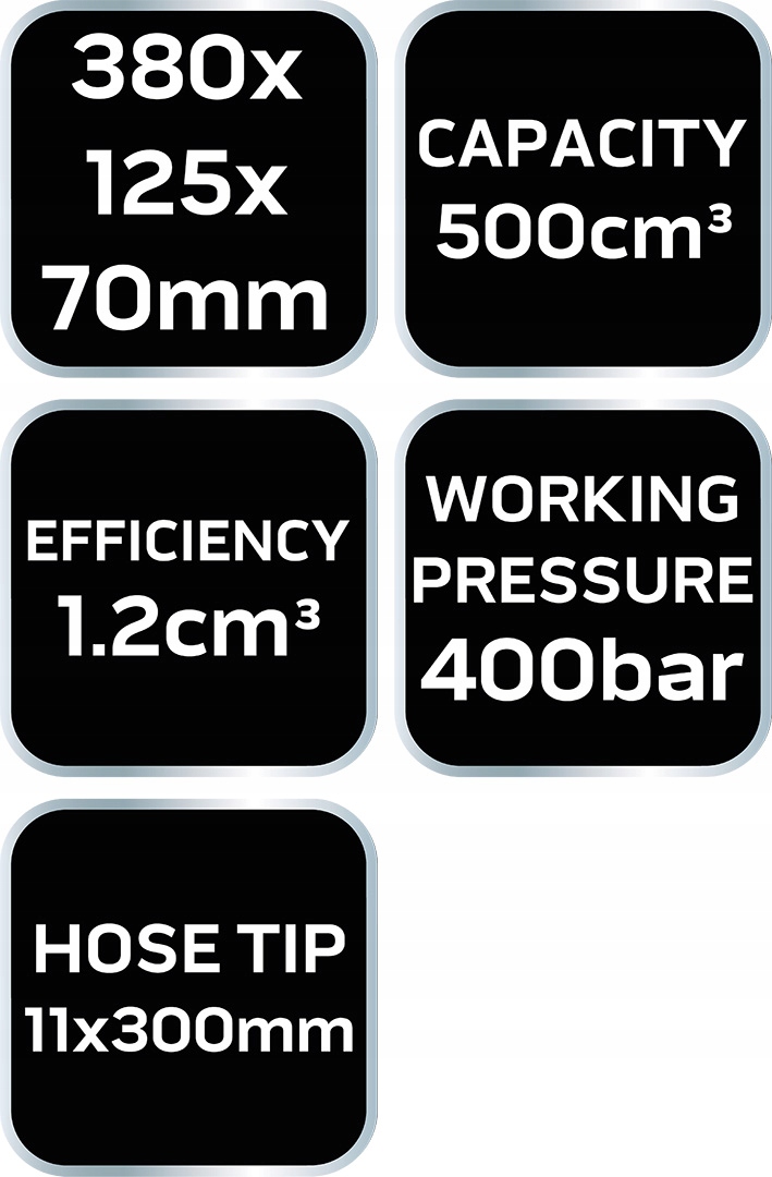 500 см3 смазка рычага 11-501 NEO Tools представляет собой ручной смазок 500 см3, оснащенный шлангом 11 x 300 мм с кончиком 4-чет. Он характеризуется емкостью 1,2 см3 для каждого прыжка. Толщина стенки цилиндра в ее случае составляет 1 мм, а рабочее давление достигает 400 бар. Компактные размеры 380 x 125 x 70 мм делают инструмент легким для переноски и хранения. Благодаря питательной ручке, Neo Tools Liver Lever Mabricant предлагает более надежную сцепление. Несоотражная ручка также влияет на комфорт работы инструмента. Смазка рычага Neo Tools рекомендуется для механики и DIY.