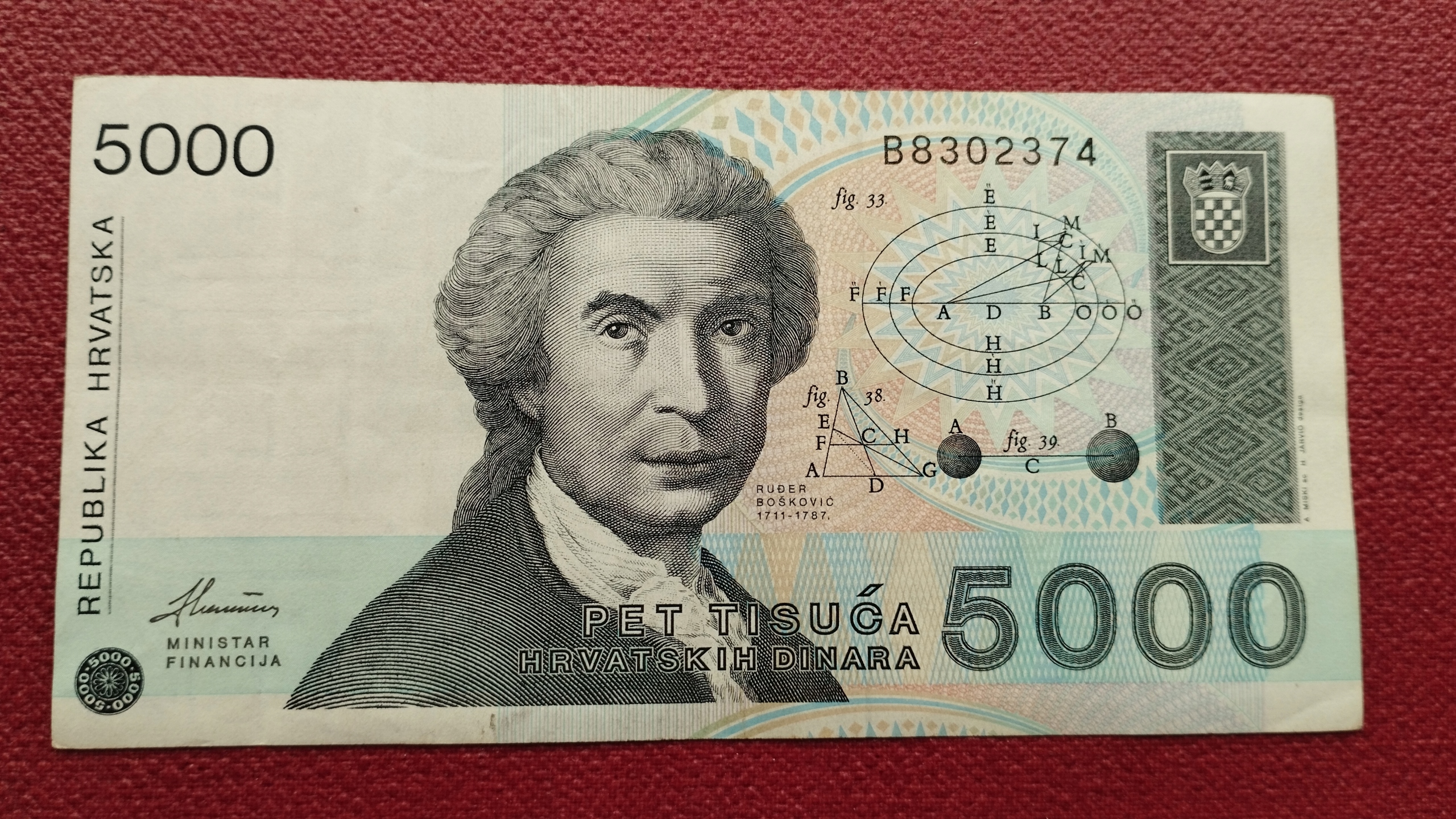 5000 ДИНАРОВ ХОРВАТИИ 1992 ГОДА