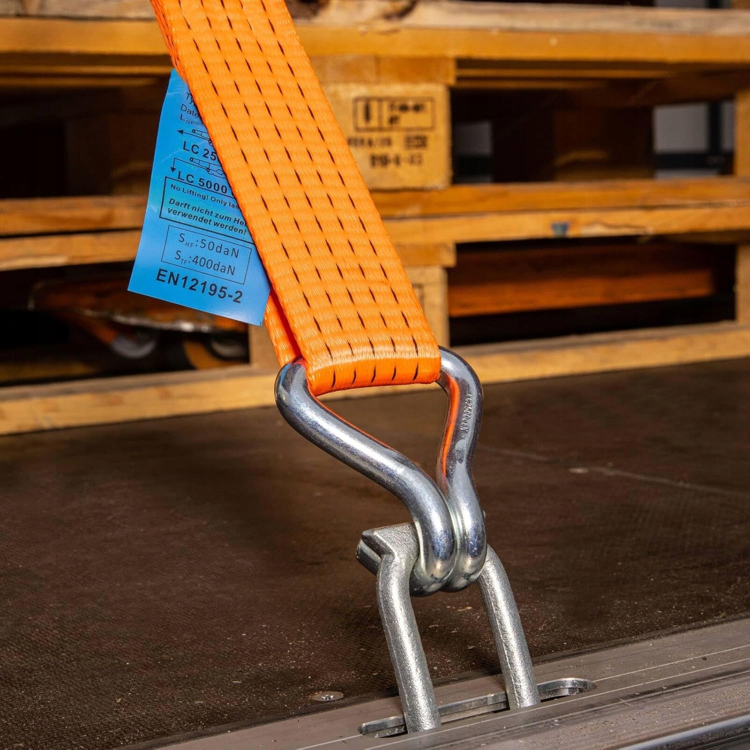 - ! Важный!!! Наши ремни безопасны и официально разрешены для защиты нагрузки / соответствуют маркировке DIN EN 12195-2 / SALC Хейпет прикреплен в правом и левом конце. Закрепительная лента перетаскивается металлическим храповым и растягивается рычагом до достижения силы. Грузовик, вы всегда получите много хорошего и постоянного качества
