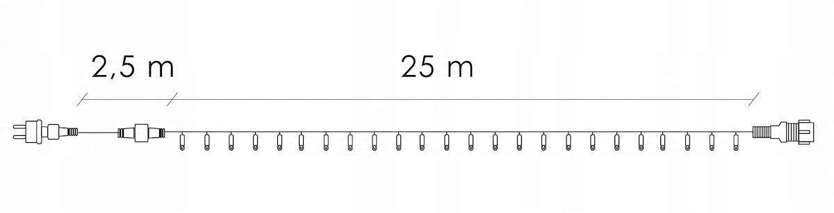 - Длина части со светодиодами: 25 м