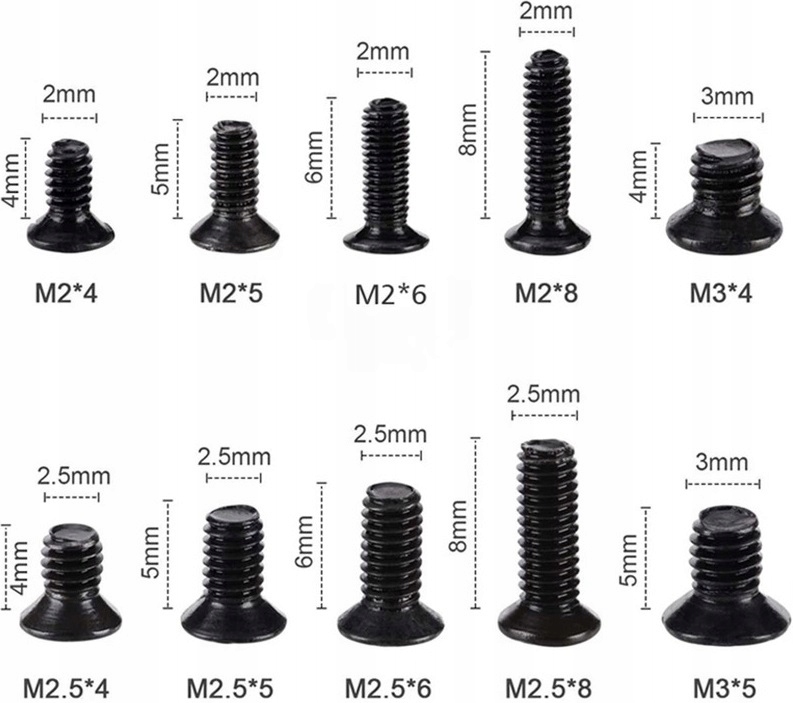 500 шт. КОМПЛЕКТ МАЛЕНЬКИХ ГВИНТІВ З ПЛОСКОЮ ГОЛОВКОЮ M2 M2.5 M3