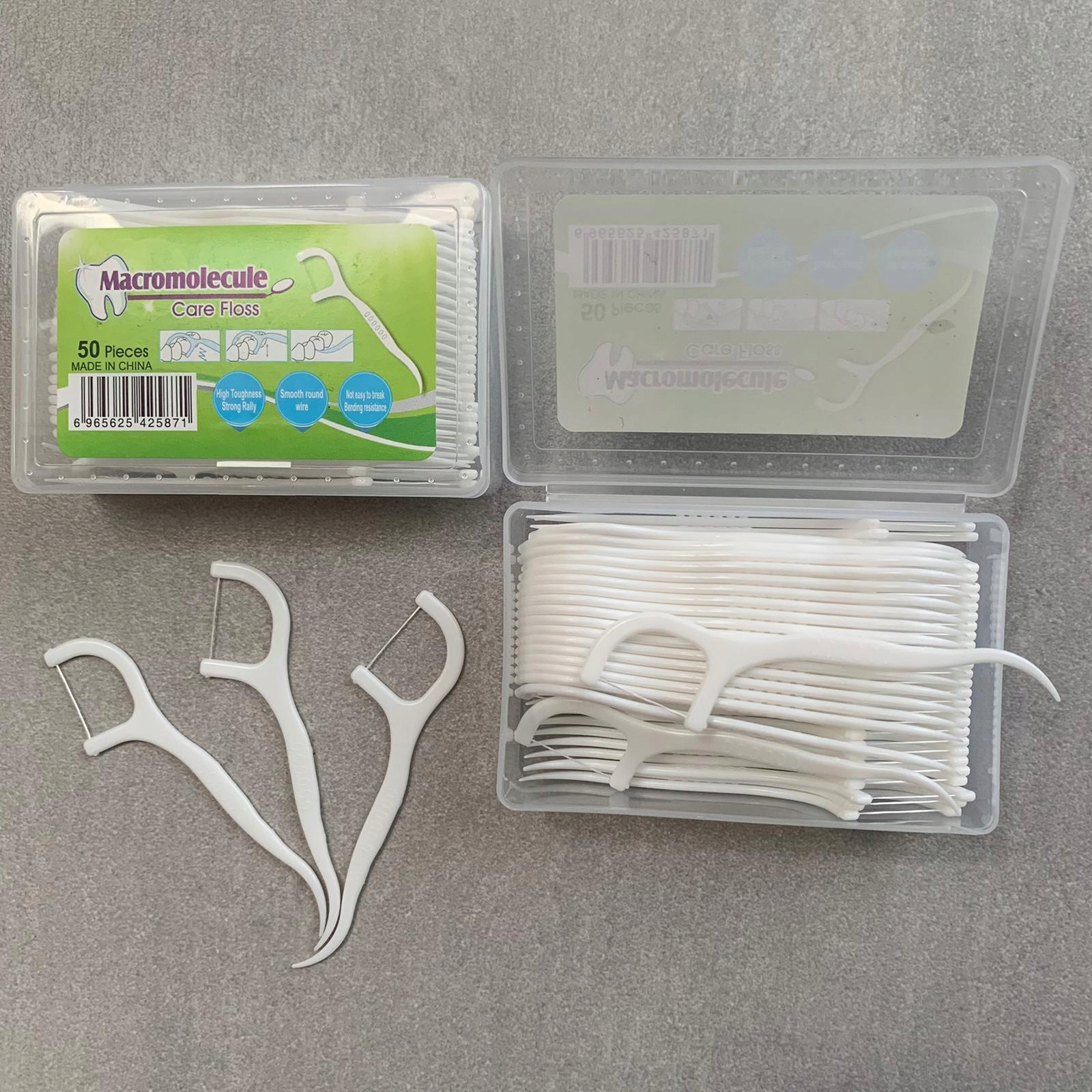 На одном конце находится зубная нить, а на другом — зубочистка.