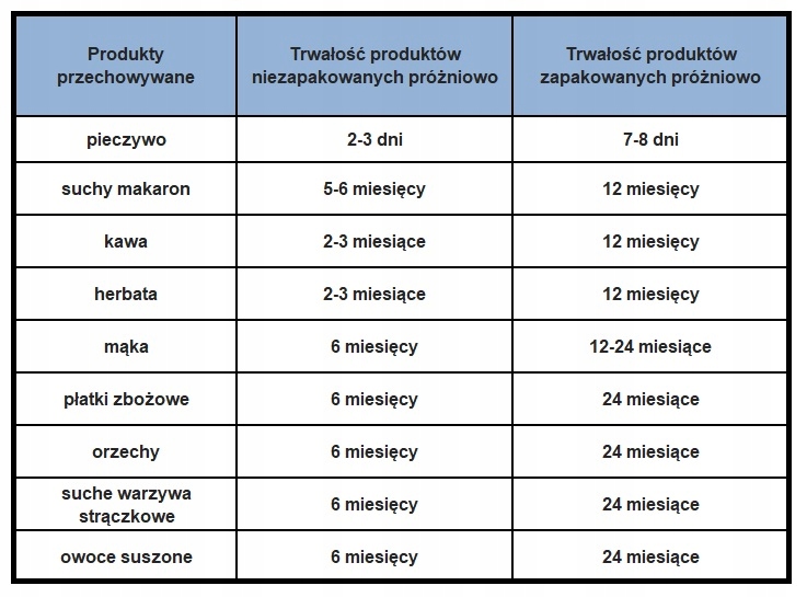 Сухие и сыпучие продукты, такие как соль, сахар, мука или крупа, быстро впитывают влагу из окружающей среды. В открытых упаковках или неплотной таре часто появляются комки и продукты теряют первоначальные свойства. Благодаря герметичной упаковке они остаются свежими в два раза дольше и их можно хранить меньшими и удобными порциями. Этот метод работает и наоборот: он помогает поддерживать необходимый уровень влажности в продуктах, склонных к высыханию, например, в хлебе, тортах и печенье.