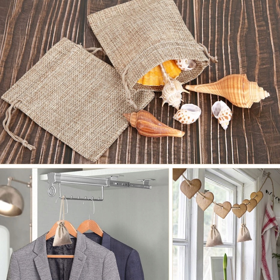 ★ Каждый джутовый мешочек закрывается на шнурок, потяните за шнурок, содержимое мешочка не выпадет. легко вынимается и легко упадет. Легко открывается или закрывается, чтобы предметы не испачкались и не потерялись.
