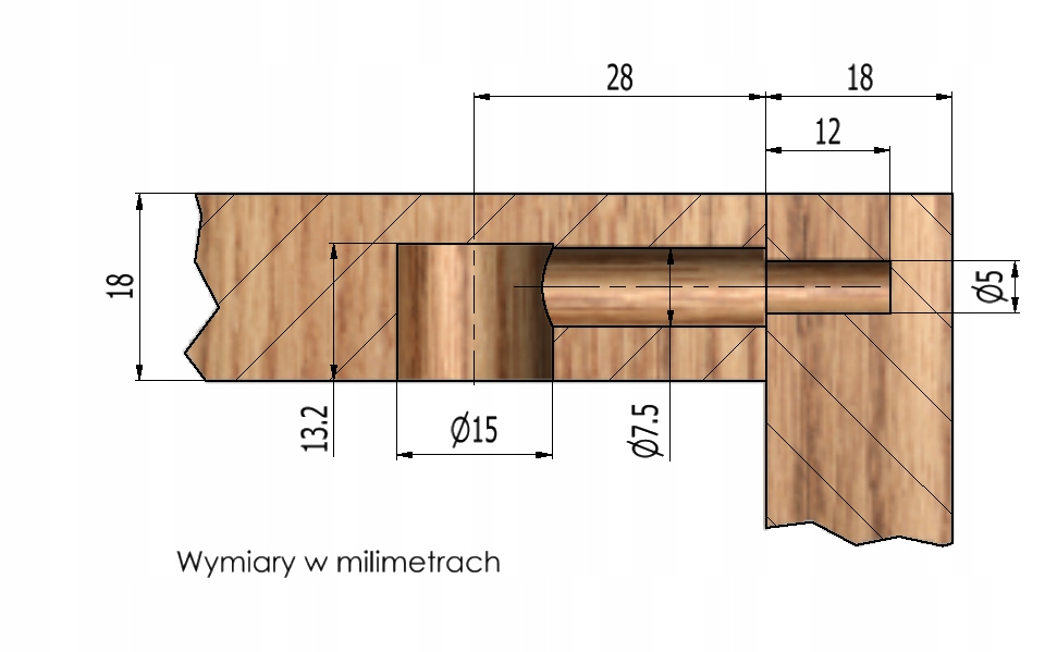 Для этого упражнения нам необходимо проделать отверстия для штифта (7,5 мм) и эксцентриков (диаметром 15 мм).