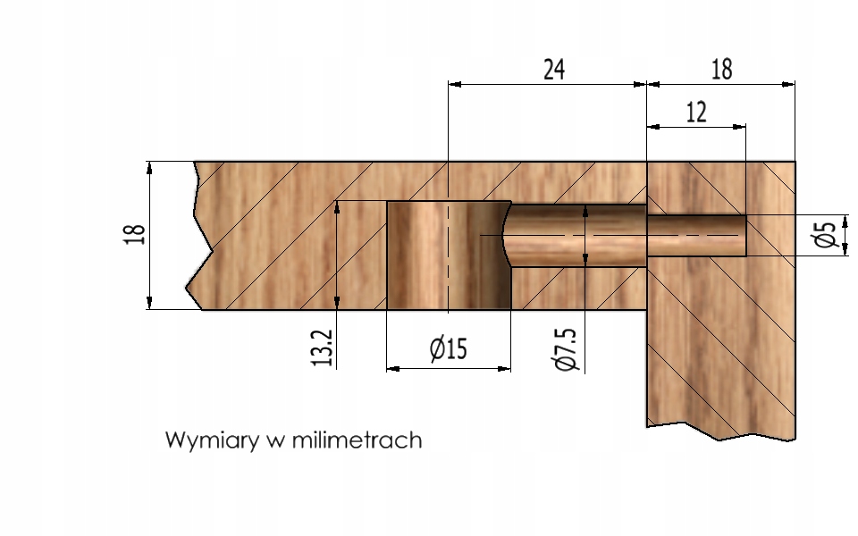 Для этого упражнения нам нужно проделать отверстия для штифта (7,5 мм) и эксцентриков (диаметром 15 мм).
