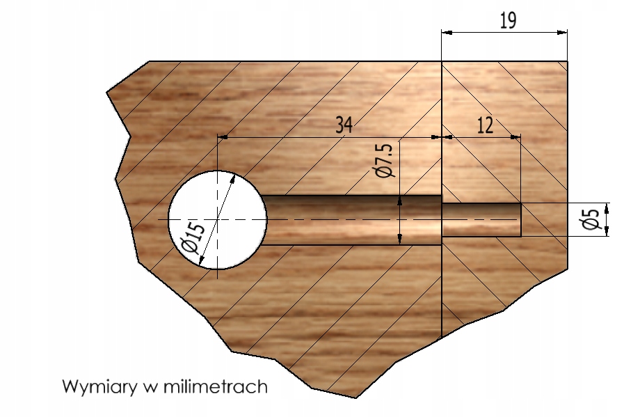Для этого упражнения нам нужно проделать отверстия для штифта (7,5 мм) и эксцентриков (диаметром 15 мм).
