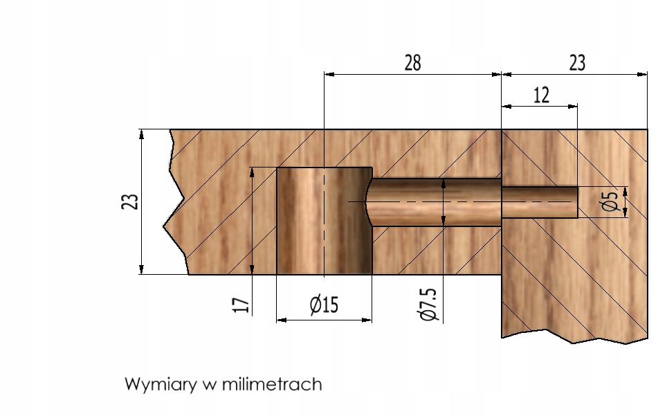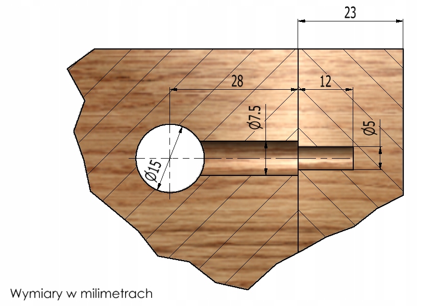Для этого упражнения нам необходимо проделать отверстия для штифта (7,5 мм) и эксцентриков (диаметром 15 мм).