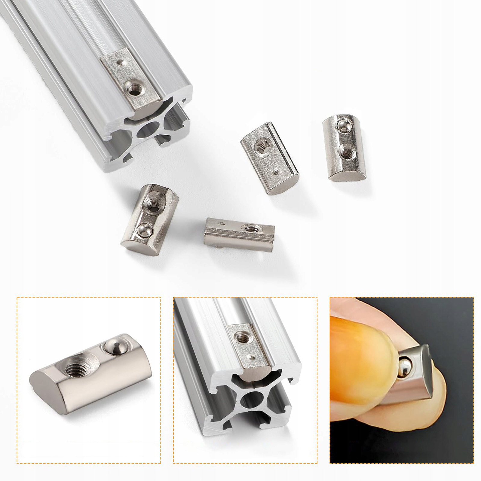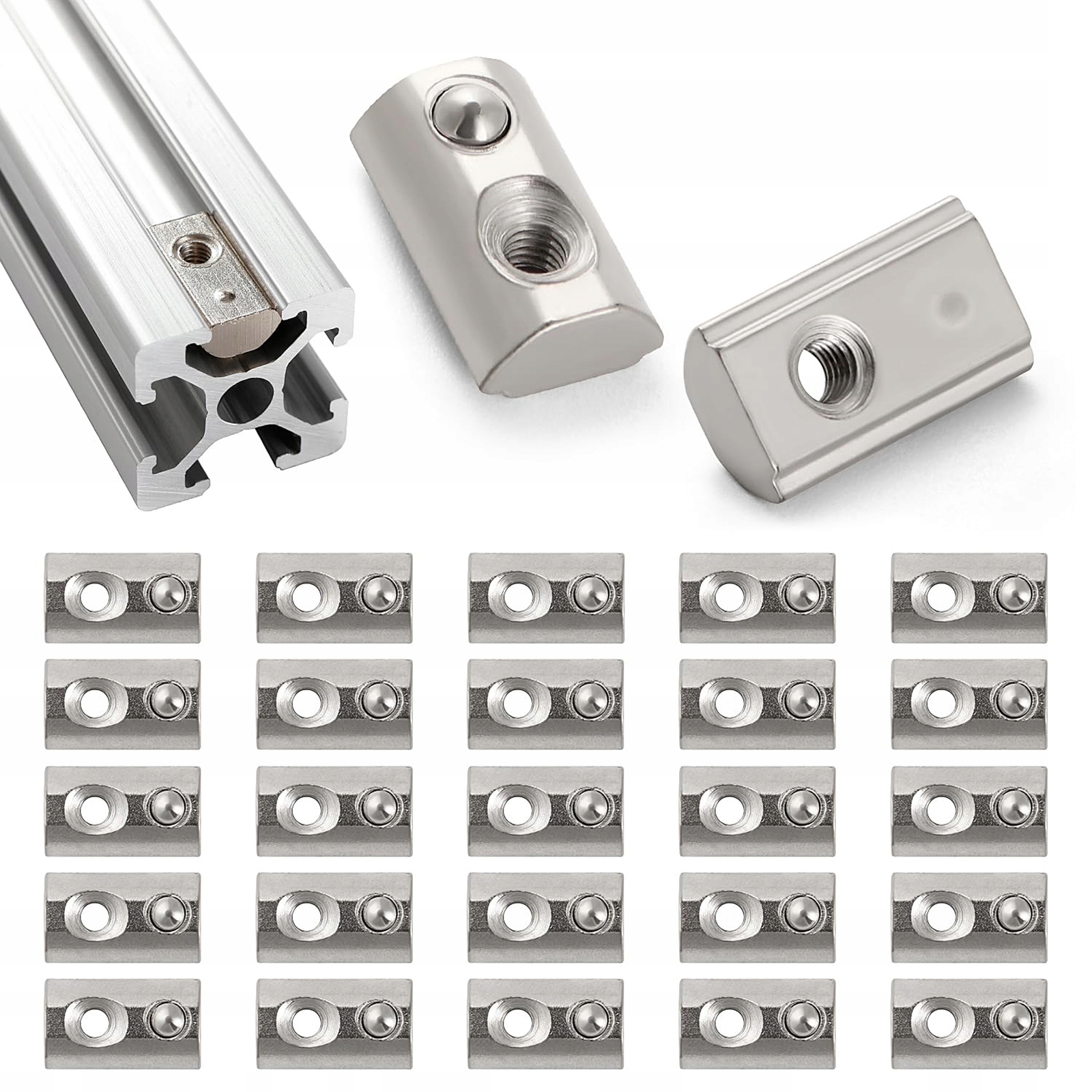 50x Т-ОБРАЗНЫЕ ГАЙКИ M8 С ШАРИКОВОЙ СТОПОРНОЙ Т-ГАЙКОЙ, профиль 4040
