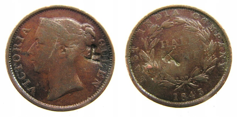 515 EAST INDIA COMPANY HALF CENT, 1845, KONTRMARKA
