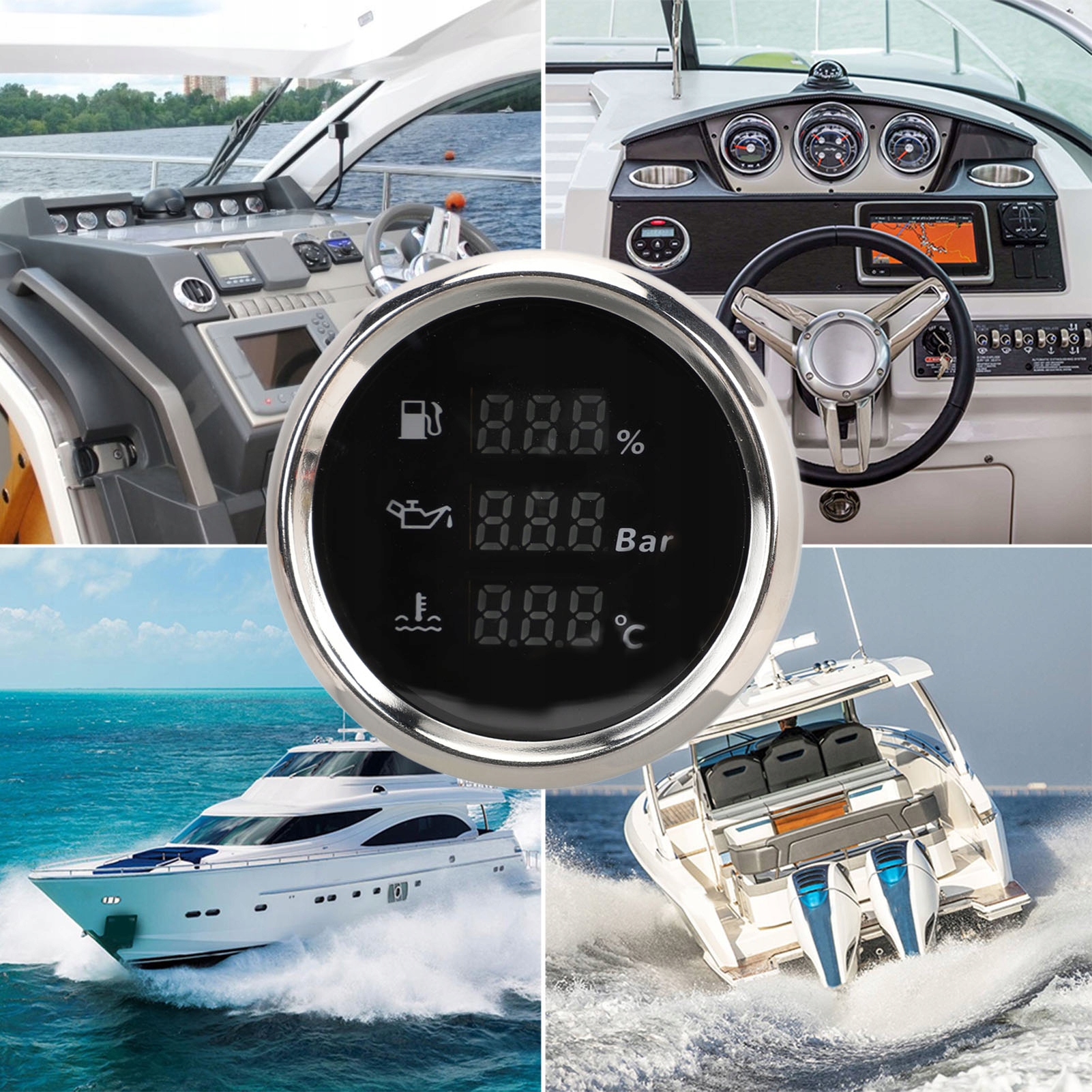 2. 3 в 1 Проект: Получить уровень масла, давление масла и информацию о температуре воды от одного метра, уменьшая количество устройств и экономия пространства. Идеально подходит для лодок, яхт, кемпингов и т. Д. Пользователи могут увидеть уровень масла, давление масла и температуру воды с первого взгляда, благодаря которому операции более удобны.