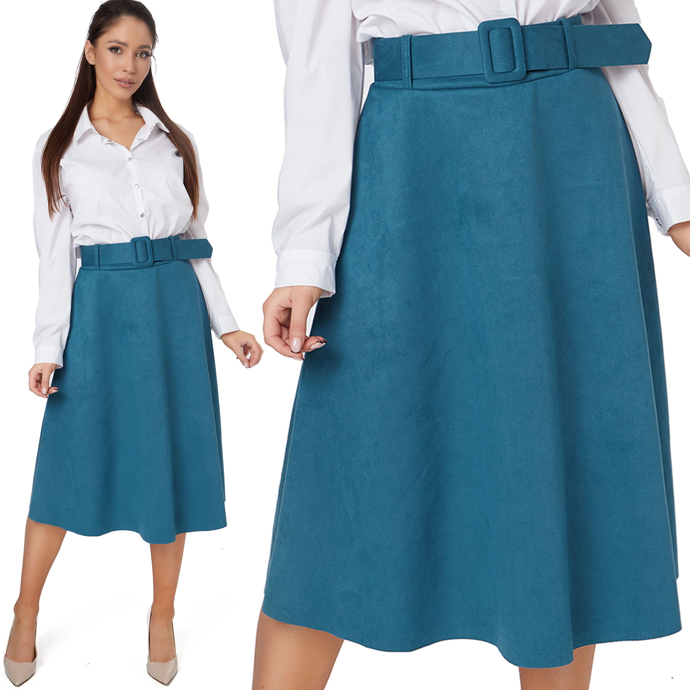 526_ ЕЛЕГАНТНА ЗАМШЕВА СПІДНИЦЯ-МІДІ З ПОЯСОМ