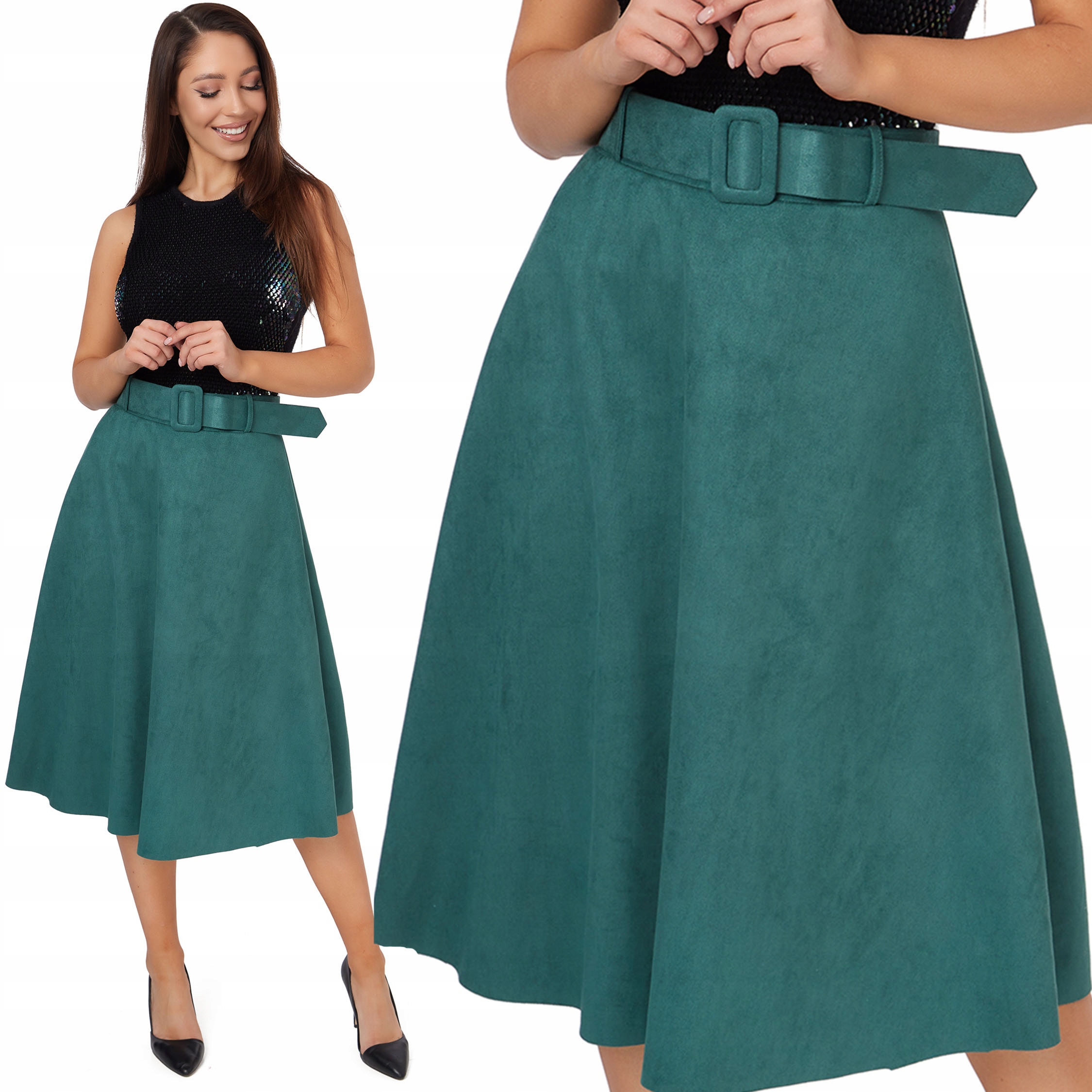 526_ ЕЛЕГАНТНА ЗАМШЕВА СПІДНИЦЯ МІДІ З ПОЯСОМ
