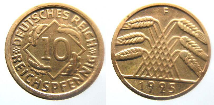 5318. НІМЕЧЧИНА, 10 REICHSPFENNIG, 1925 F ST1-