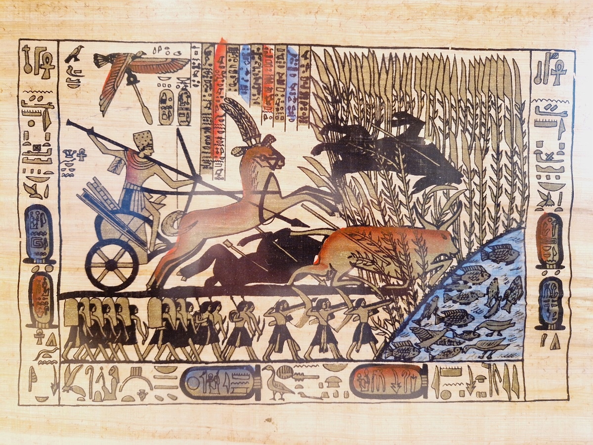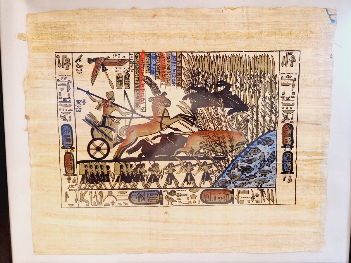 53cm x 43cm / PAMIĄTKA Z EGIPTU - OBRAZ PAPIRUS - OPRAWA RAMA PLEXI /8736