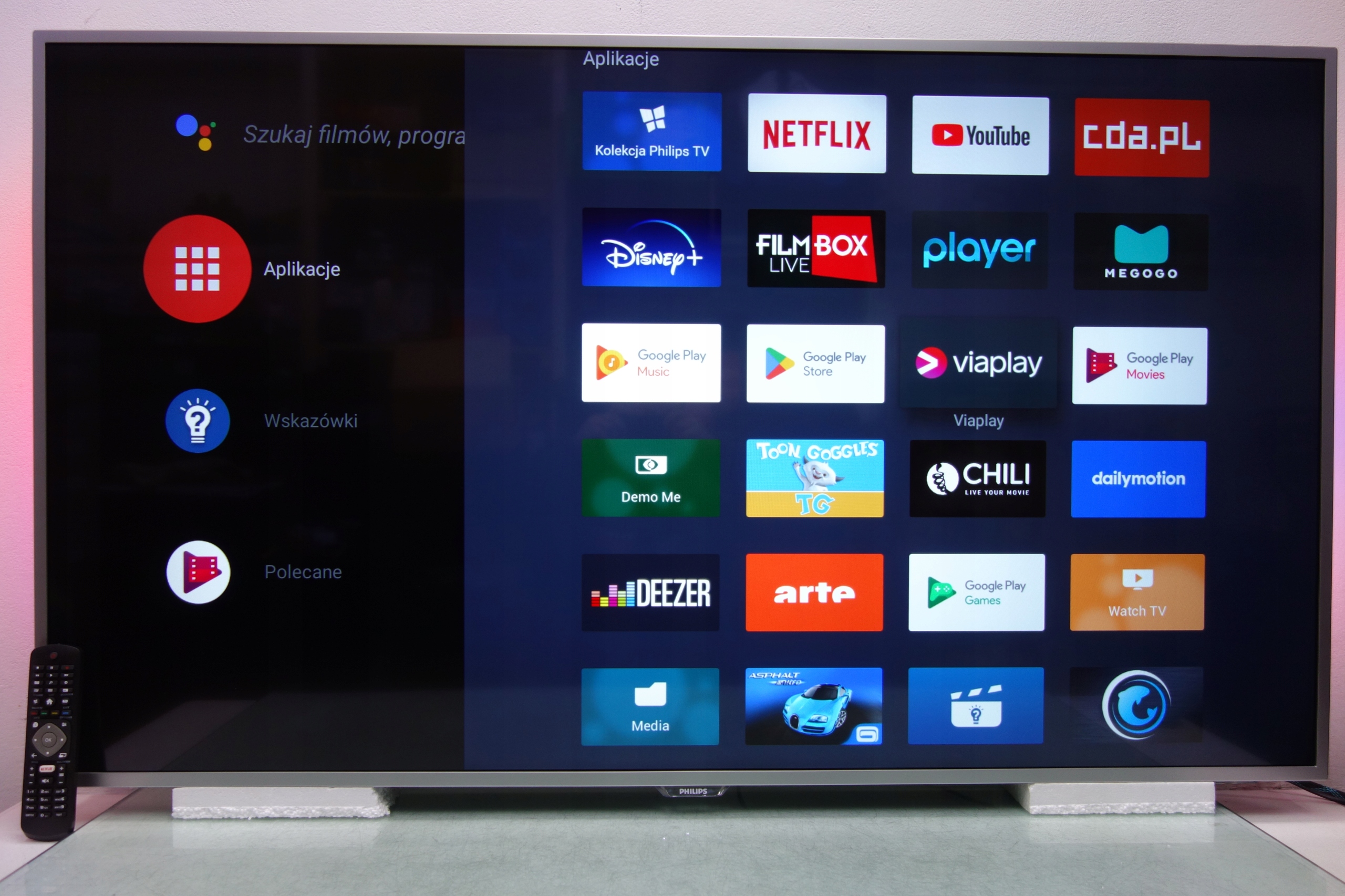 - Приложения: Disney+, YouTube, Netflix, Megogo, Vially, CDA.PL, Player (больше приложений после создания учетной записи Google)