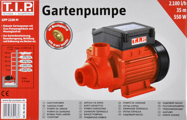 Садовый водяной насос GPP 2100M с прочным корпусом насоса из литого материала, отличающимся высокой устойчивостью к механическим повреждениям, очень тихой работой и высоким КПД при низком энергопотреблении.