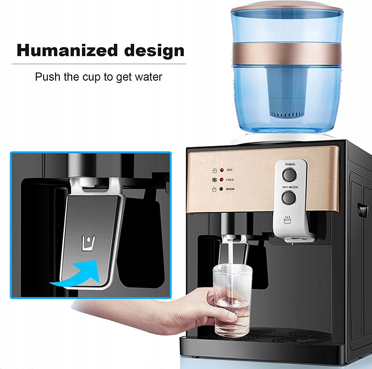 - Дизайн «Push the Cup»: вода вытечет при нажатии. Вы можете управлять им одной рукой, что удобно для легкого получения воды во время работы или принятия чего-либо.