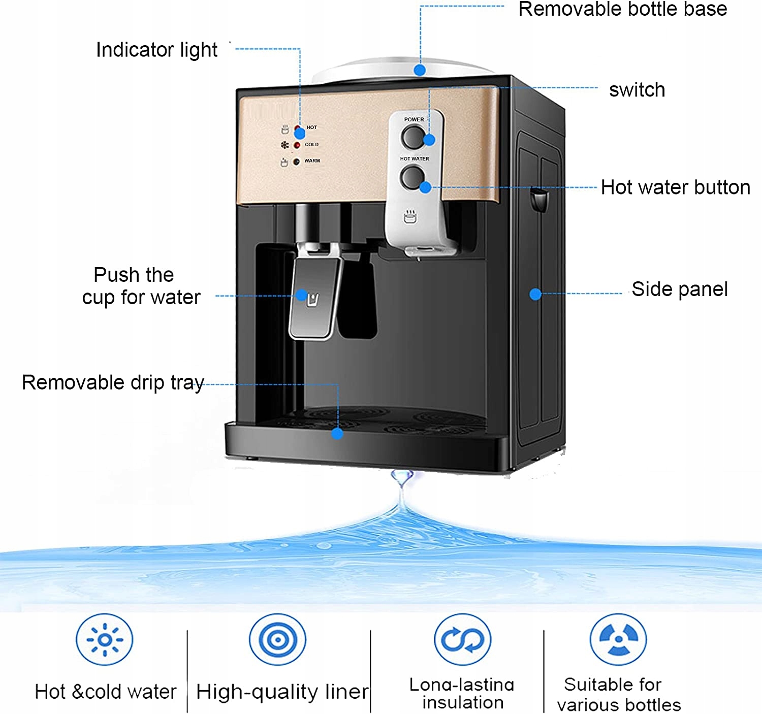 - Легко демонтируется: водяное сиденье этого электрического диспенсера для горячей и холодной воды Диспенсер для воды съемный, его можно легко очистить.