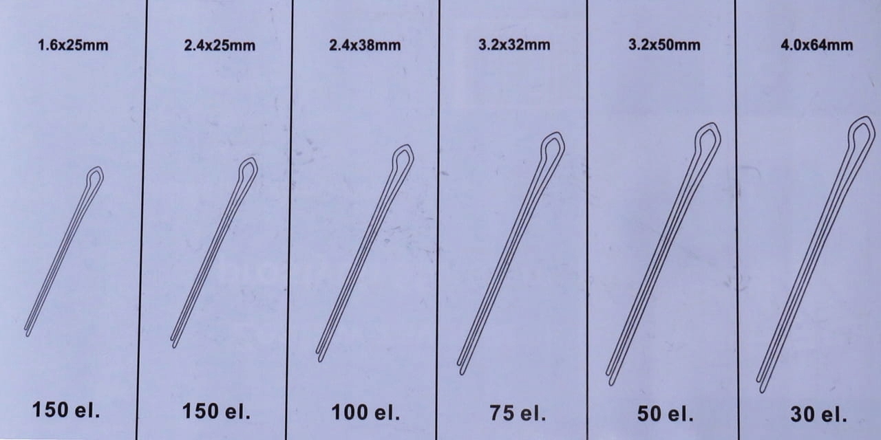 В комплект входят шплинты различных размеров, что позволяет адаптировать его к различным применениям.