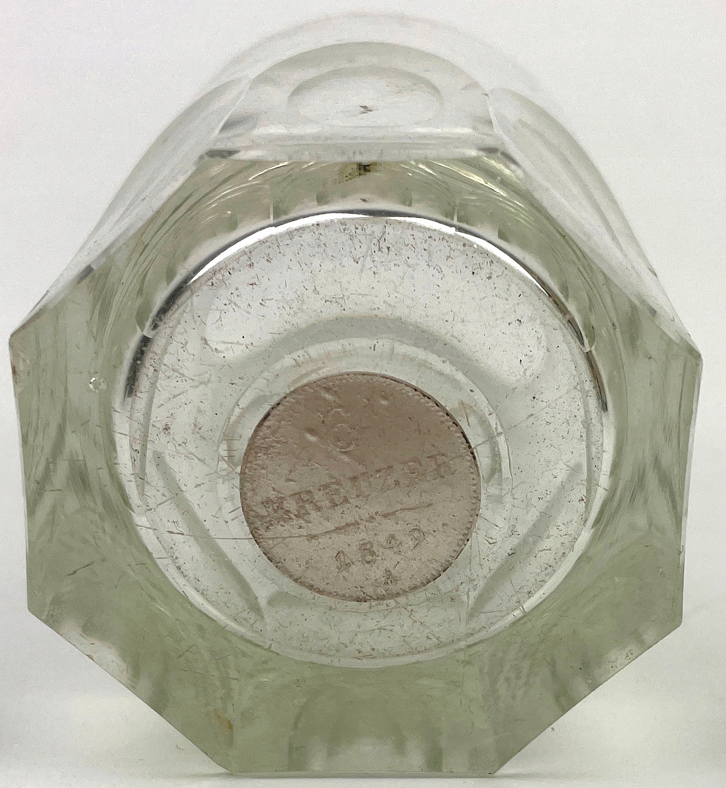 При изготовлении буквы внизу клали монету, а затем приклеивали фрагмент стекла толщиной в несколько миллиметров, но стык двух элементов «скрывал» в процессе резки стекла. Видно только на свету.
