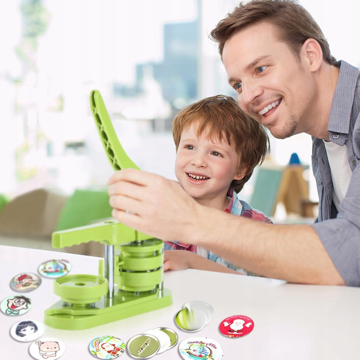 Сначала разрезать изображение нашим бесплатным ножом для резки кругов. Затем поместите металлическую крышку бляшки в верхнюю форму и поместите изображение на крышку. Затем поместите прозрачную фольгу в изображение и нажмите рычаг для производственной машины машины. Наконец, поместите металлическое дно на дно формы и снова нажмите рычаг. Таким образом, вы получите свою собственную доску кнопки.
