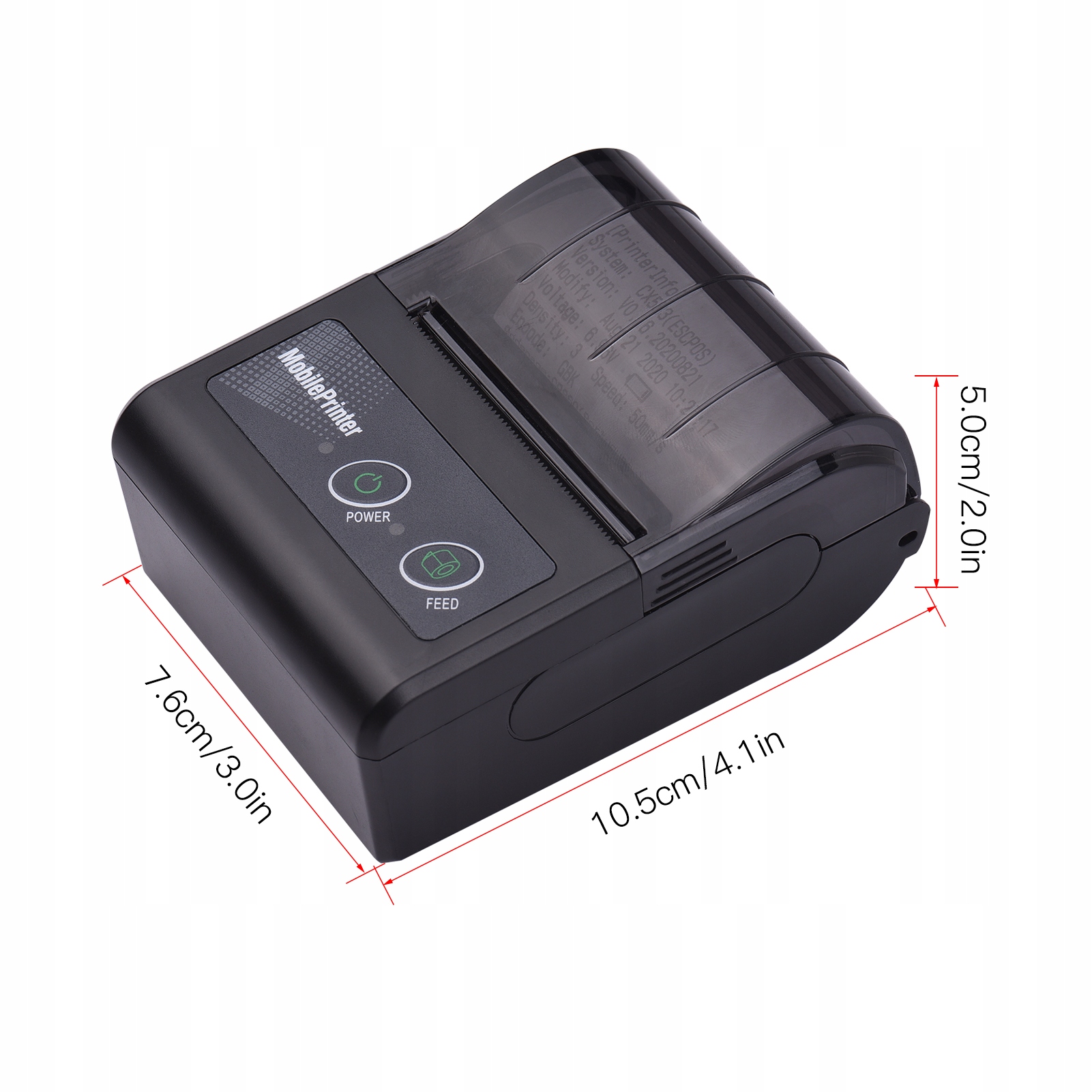 Thermal Mini Bt Printer, ширина бумаги 57,5 ± 0,5 мм, макс. Диаметр ролика 40 мм, ширина печати 48 мм, скорость печати 50-80 мм/с, разрешение 203DPI.