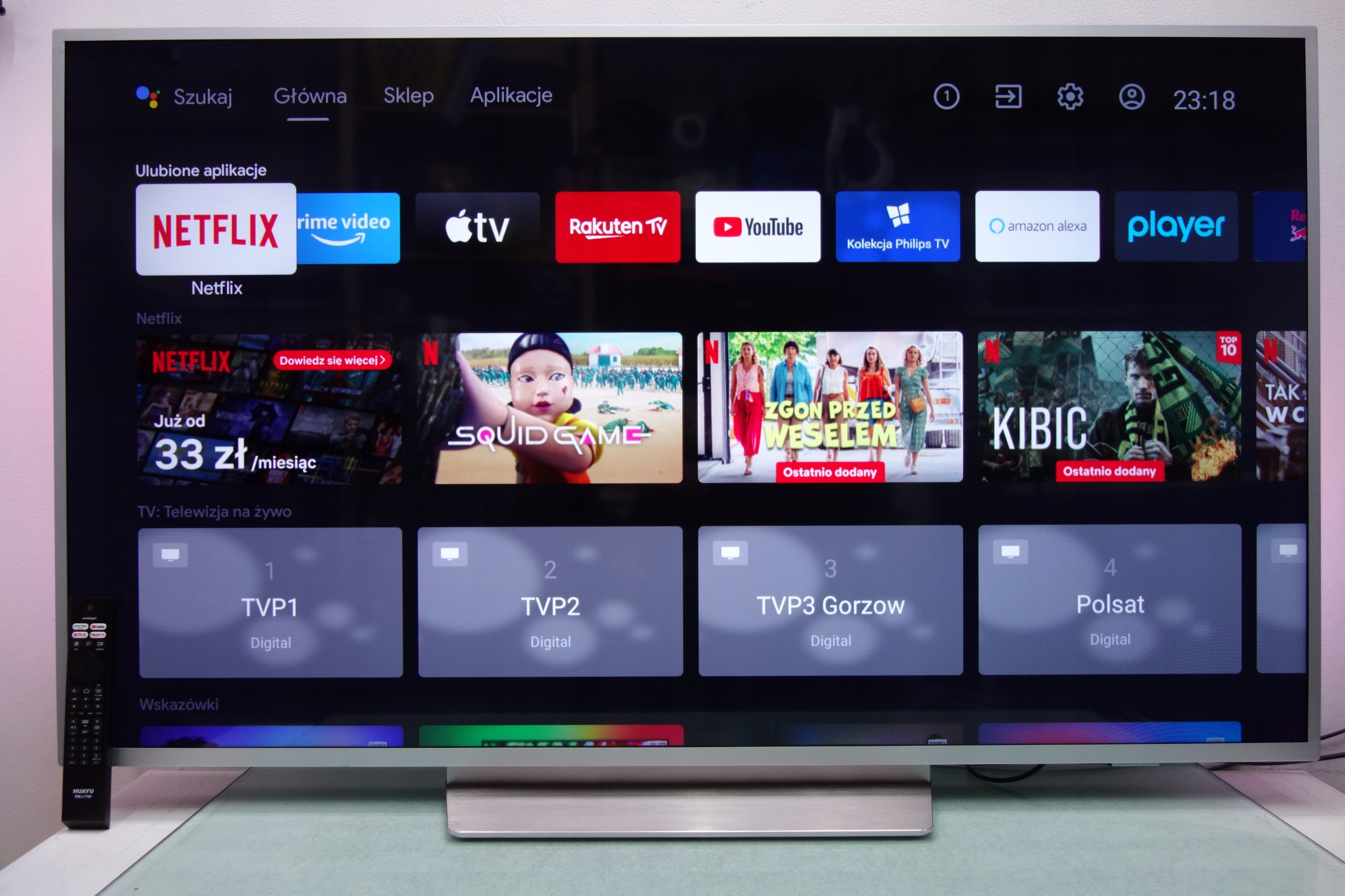 - Приложения :, YouTube, Netflix, Prime Video, Viallay, CDA.PL , Player, YouTube Music, Rakuten TV, TVP VOD (больше приложений после создания учетной записи Google)