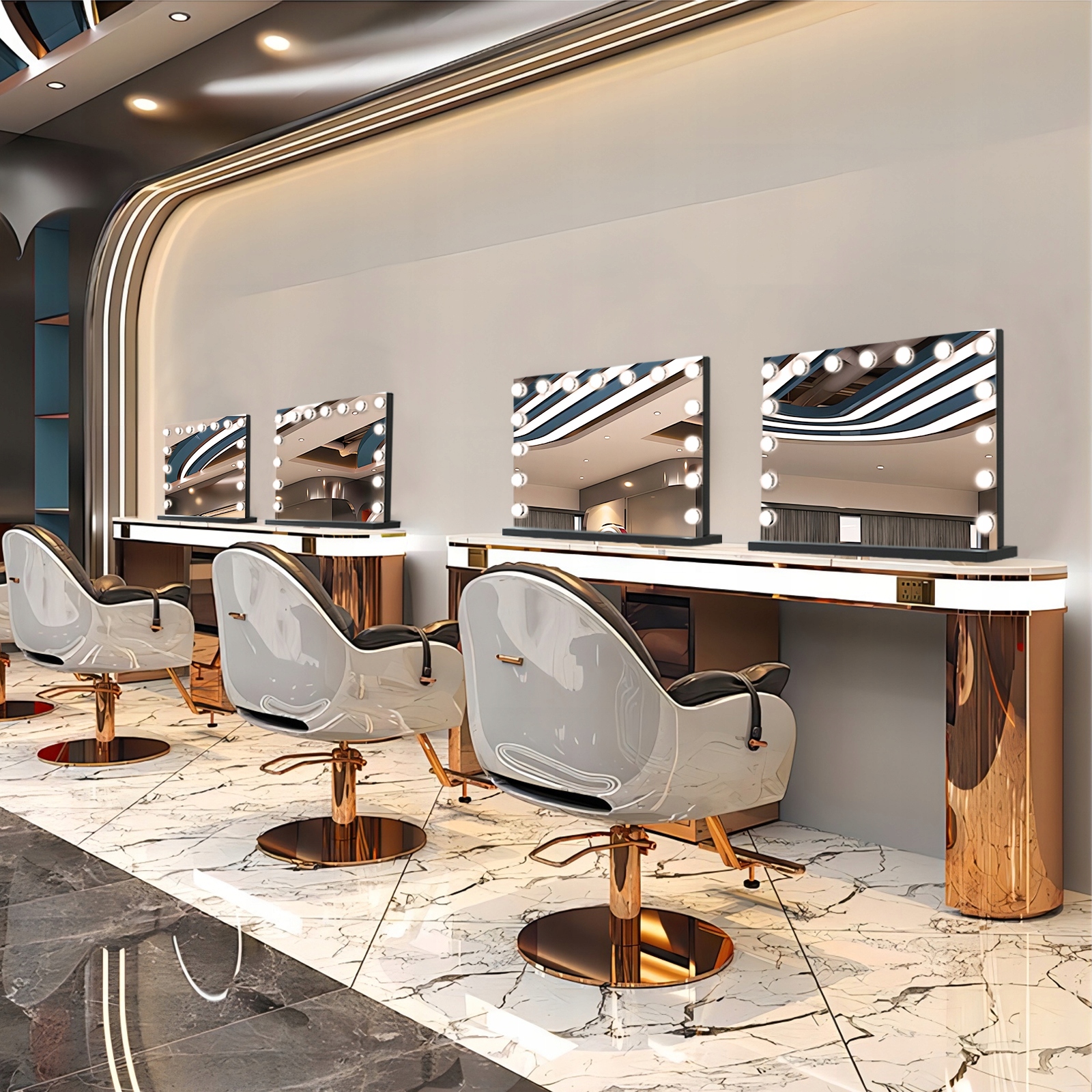 【Стандартные размеры и функции】: Поверхность зеркала составляет 58x45 см. Настоящее голливудское зеркало макияжа. USB 12 В/1 Порт зарядки на боковой раме зеркала позволяет легко заряжать телефон.