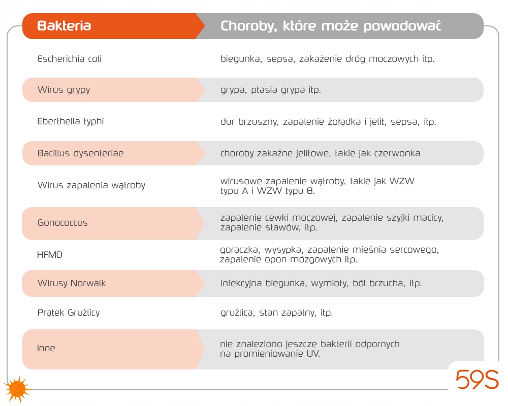Инфракрасный свет лампы 59S разрушает молекулярную структуру ДНК и РНК бактерий, полностью убивая их всего за 29 секунд.