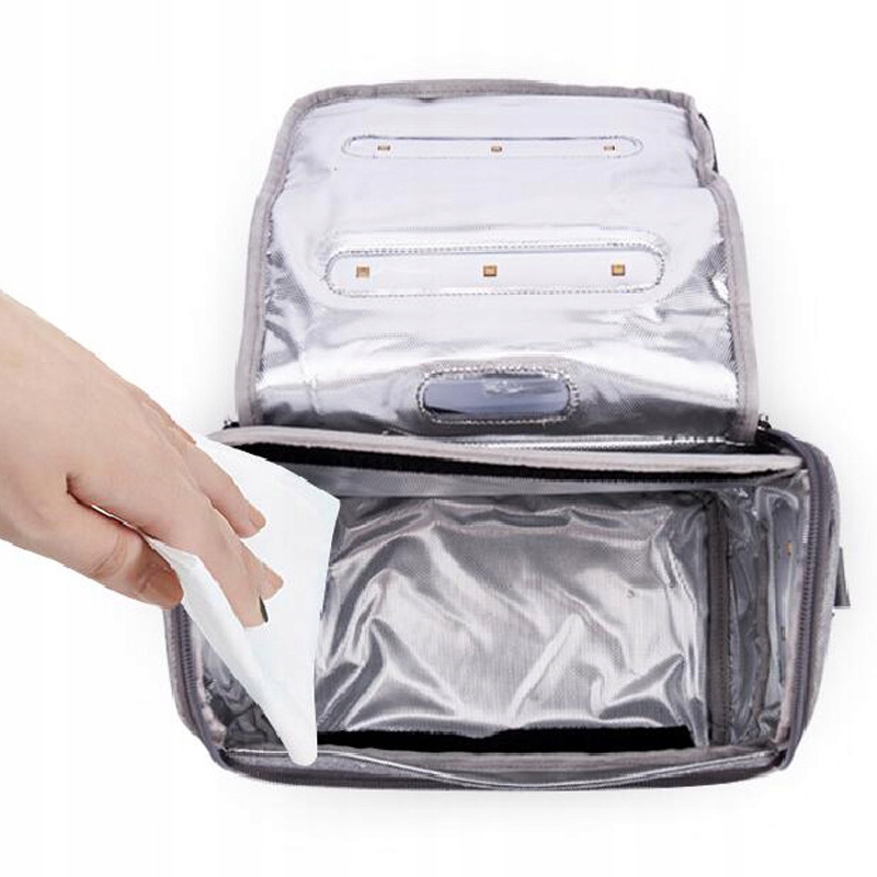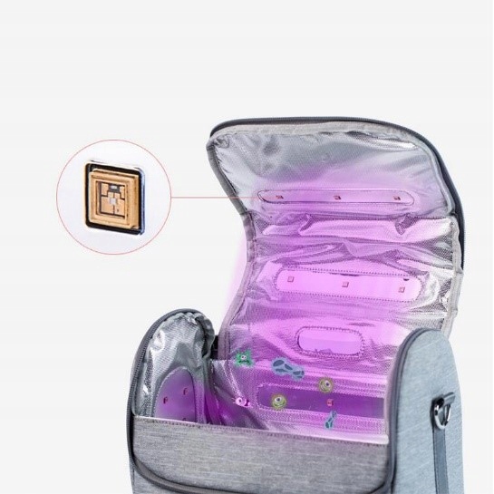 Стерилизационный пакет с УФ-светодиодной технологией и запатентованным «золотым чипом». Одного щелчка мыши достаточно, чтобы достичь уровня дезинфекции 99,9% всего за 59 секунд. Идеально подходит для ухода за вашим повседневным оборудованием! Сумку можно использовать и как рюкзак. Внизу имеется отдельный контейнер с функцией термоупаковки.