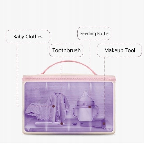 Идеально подходит для путешествий всей семьей. Функционирует как сумка/контейнер. Облицован специальной пленкой, что делает его водонепроницаемым. Вы можете стерилизовать все, что кладете в сумку, за 59 секунд.