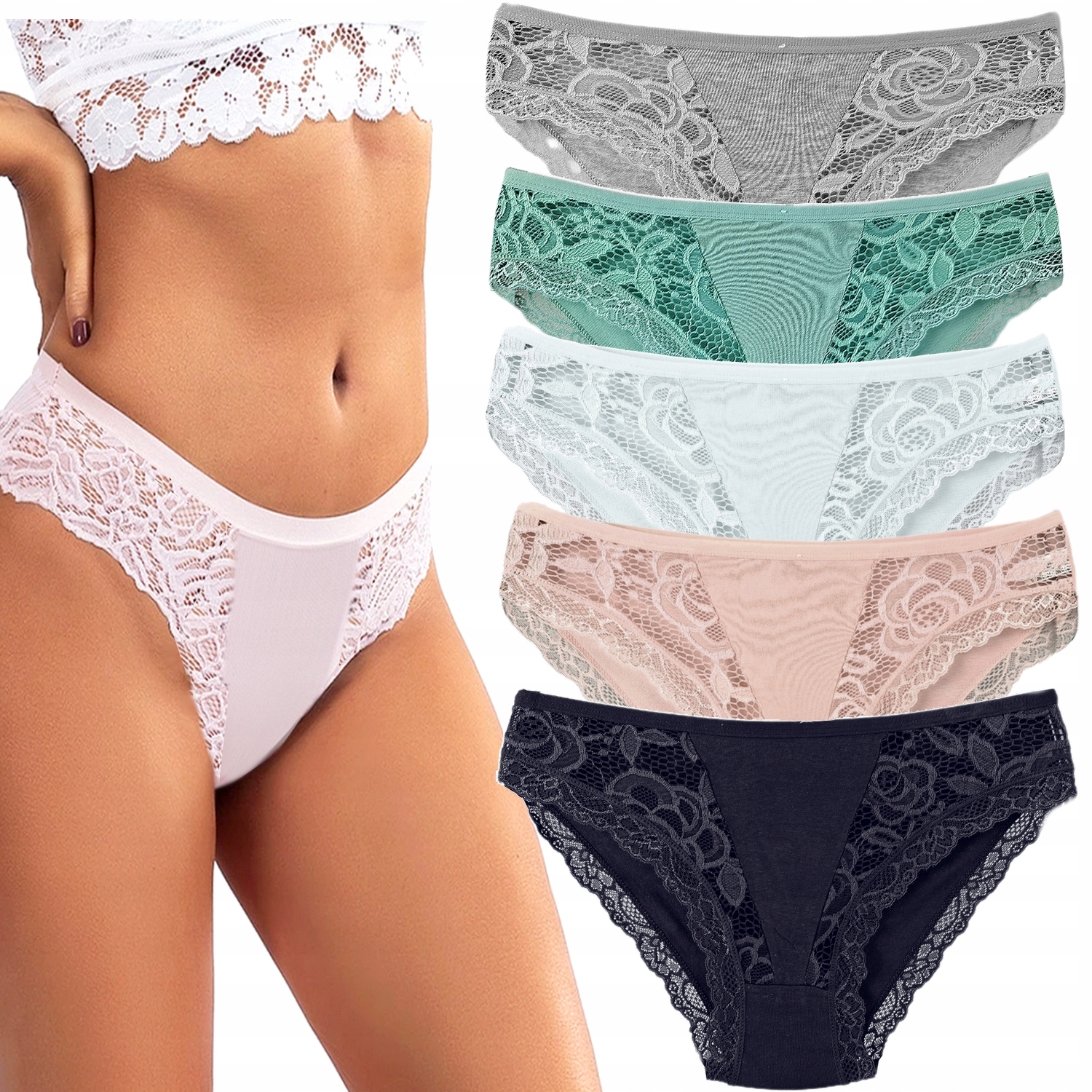 5x ТРУСИКИ ЖЕНСКИЕ ХЛОПКОВЫЕ С КРУЖЕВОМ # M 62