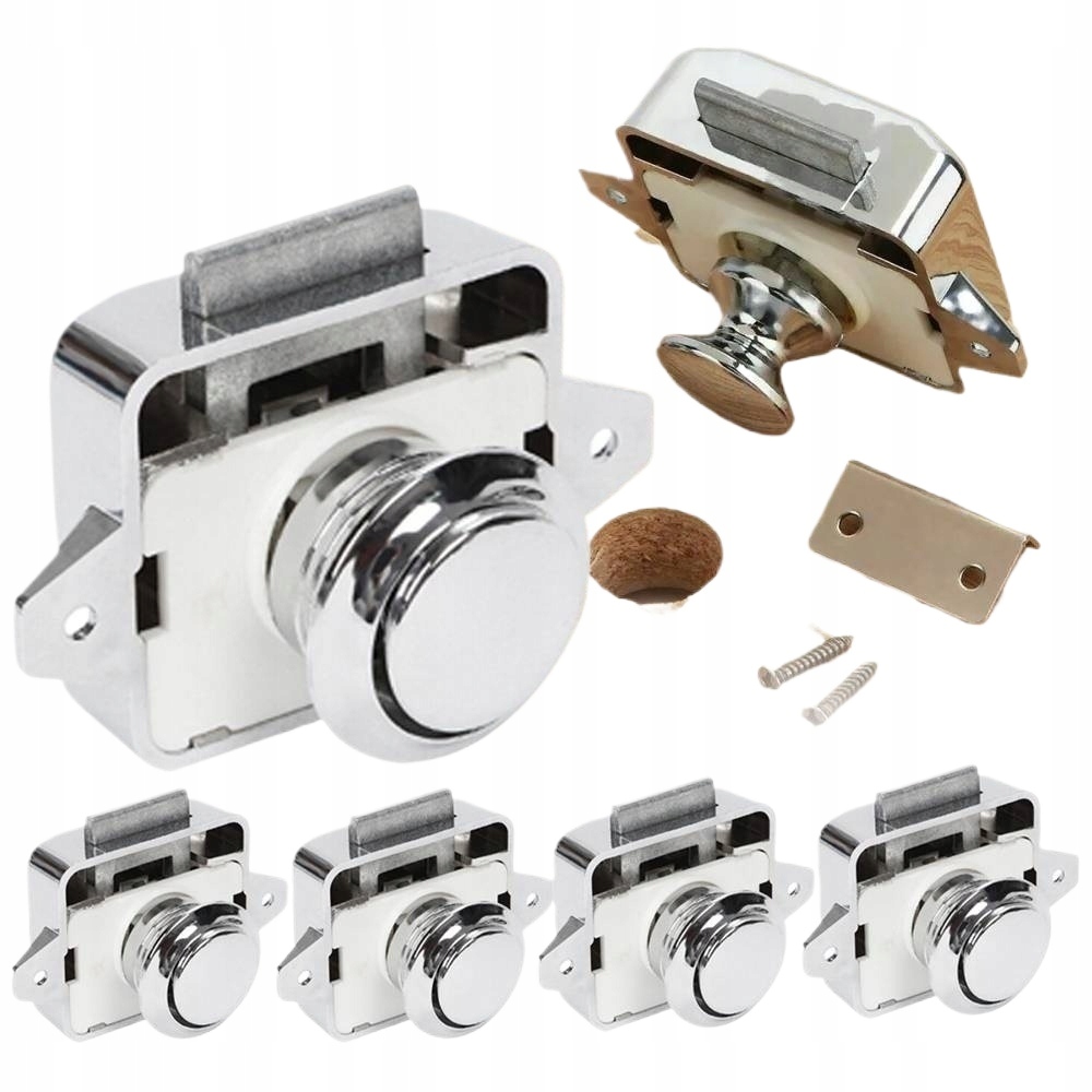 🍁🍁🍁Кнопка блокировки мебели Push Lock, 5 предметов, для лодки, фургона и кемпера (хром)🍁🍁🍁
