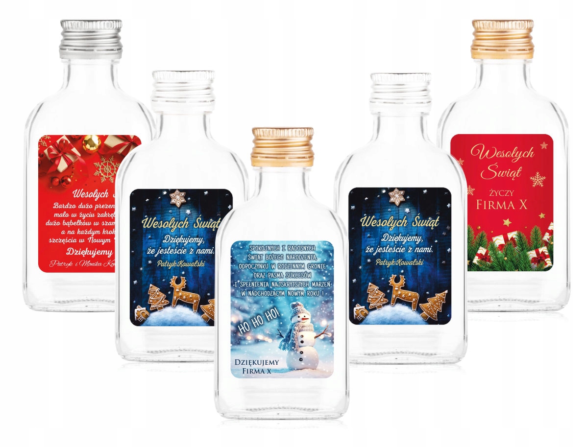 5x РОЖДЕСТВЕНСКИЕ БУТЫЛКИ ПО 100 МЛ ДЛЯ ЛИКЕРА ПОДАРОЧНАЯ НАКЛЕЙКА С ПОСВЯЩЕНИЕМ