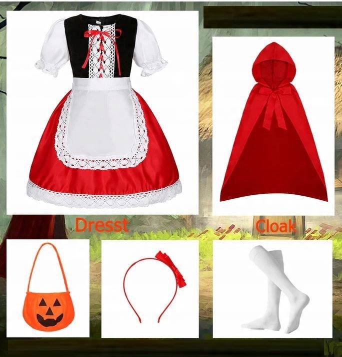 Костюм с красной шапочкой, платье с накидкой, карнавал на Хеллоуин