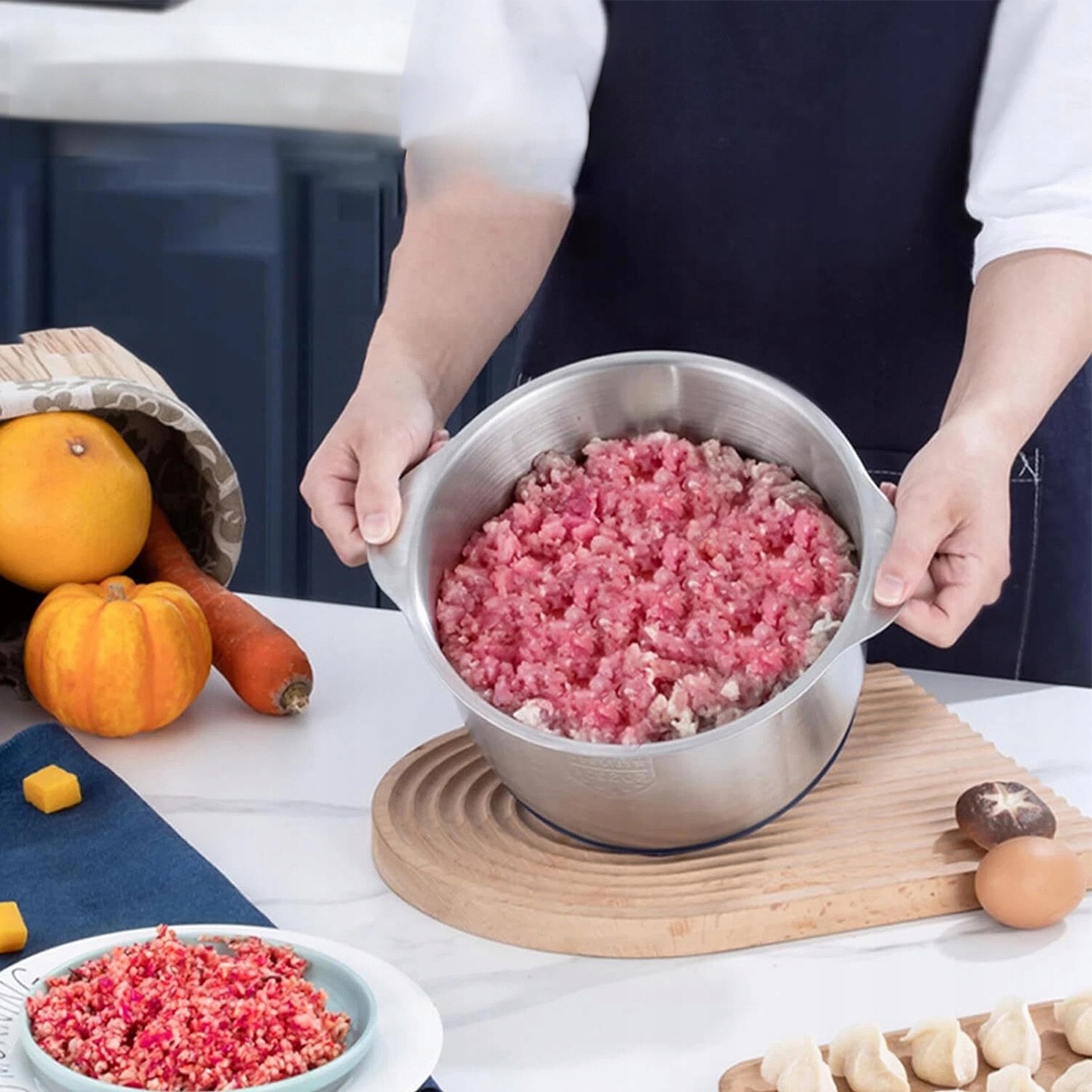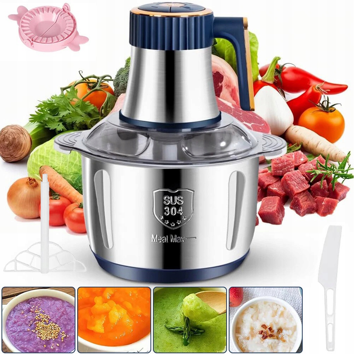 ✅Эта мясорубка изготовлена из нержавеющей стали 304 и оснащена 6 лезвиями двойной заточки, что обеспечивает длительную и безопасную работу. Моторизованные лезвия измельчителя лука позволяют быстро нарезать лук, шинковать ингредиенты для салата, нарезать капусту и измельчать замороженные фрукты.