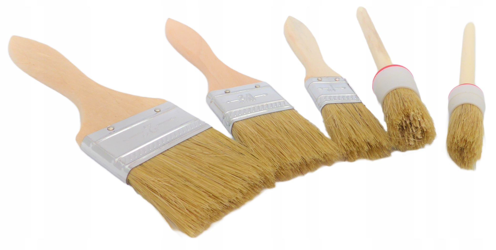 ✅ Различные размеры: В набор входят кисти разных размеров, в том числе 3 плоские кисти шириной 25, 36 и 50 мм и 2 круглые кисти диаметром 20 и 25 мм.