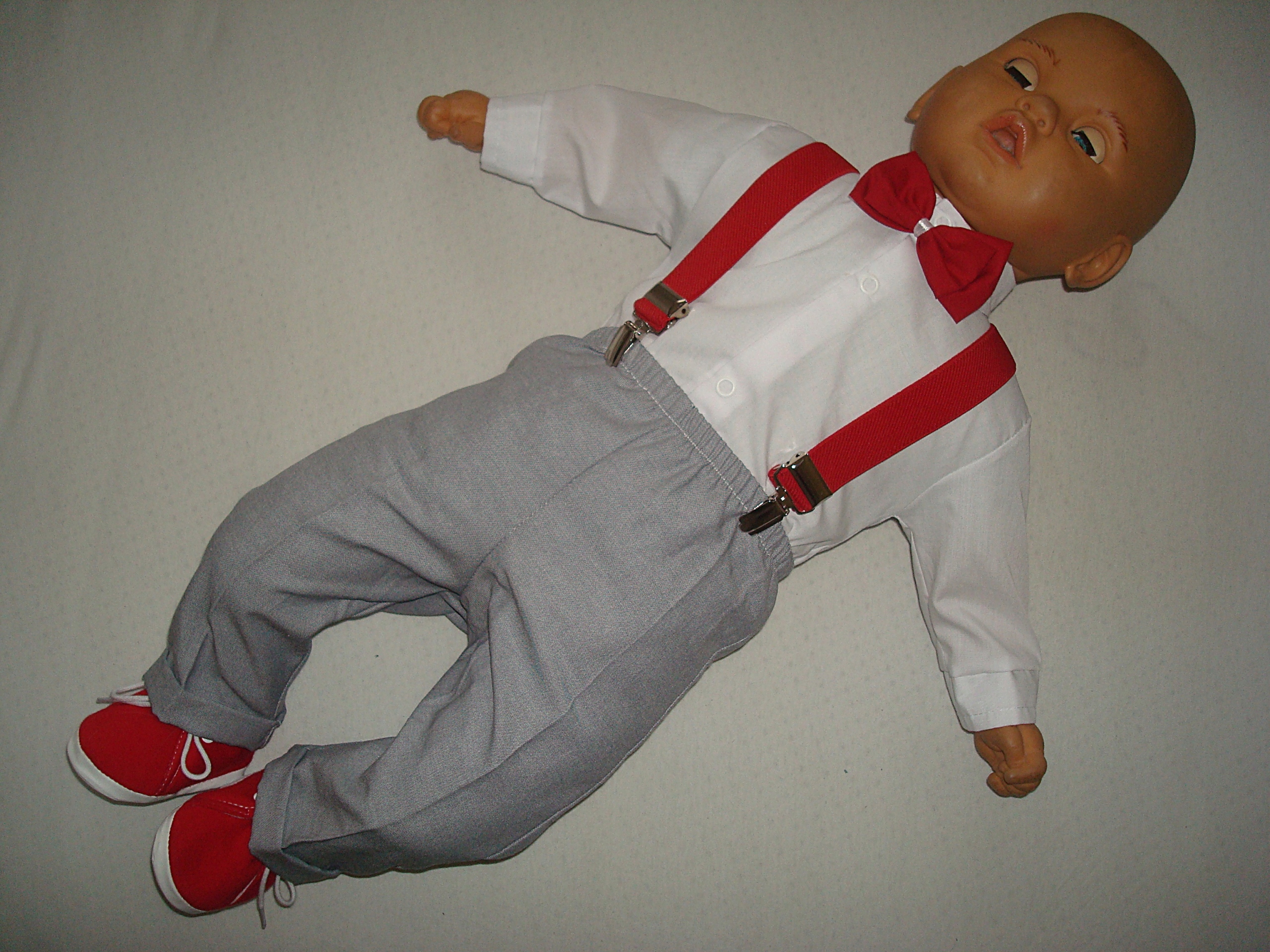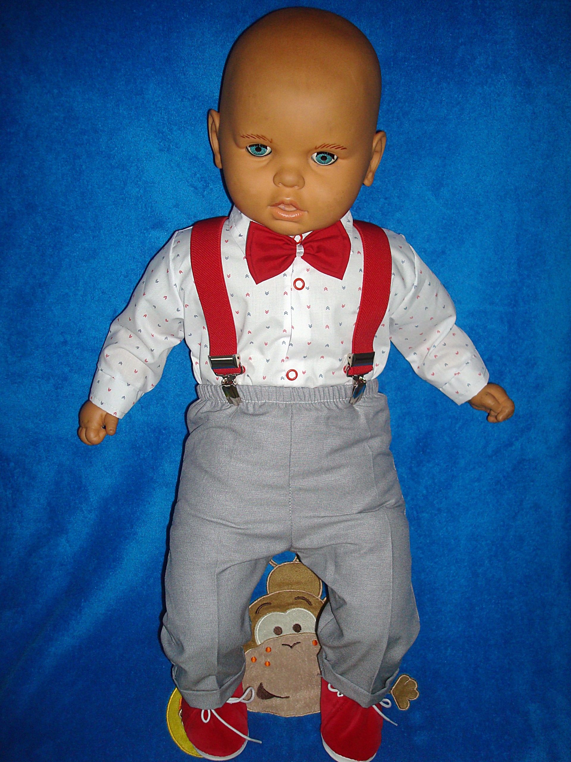 - батник+брюки+галстук-бабочка+подтяжки+свитер в форме куртки.