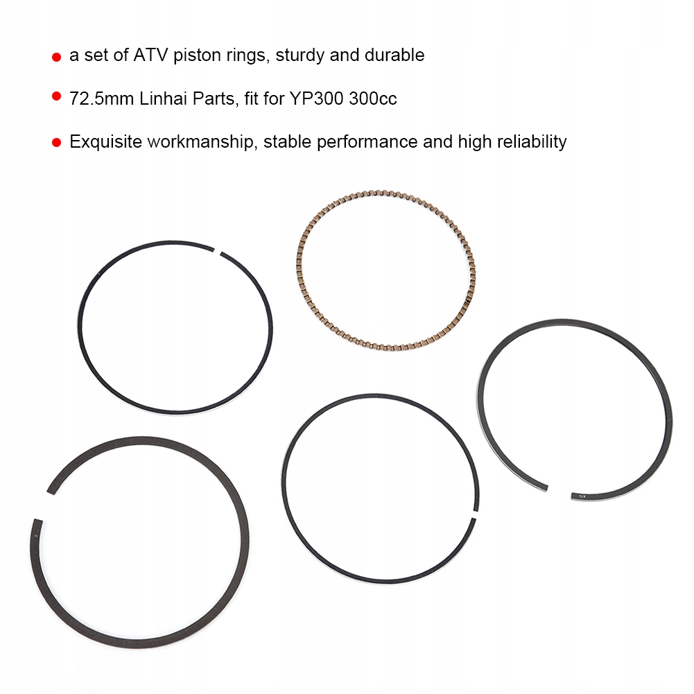 1. Это комплект поршневых колец для квадроциклов, прочных и долговечных. Linhai, 2 детали, 72,5 мм, подходит для YP300 300 куб.см. 3, изысканное качество изготовления, стабильная производительность и высокая надежность. 4. Неотъемлемая часть улучшения характеристик вашего мотоцикла. 5. Идеально подходит для вашего автомобиля и является прямой заменой вашего старого или сломанного автомобиля.