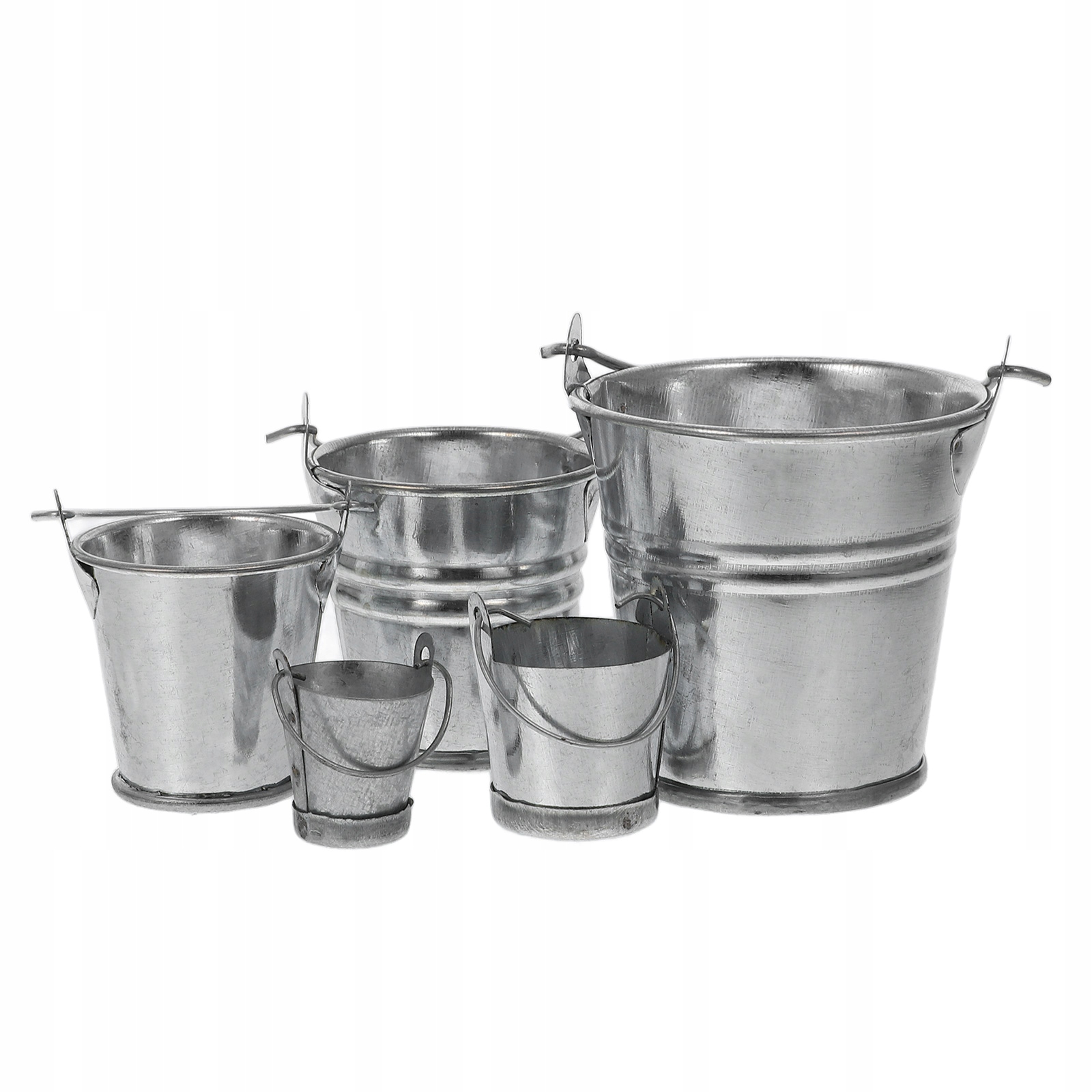 МАЛЕНЬКОЕ МЕТАЛЛИЧЕСКОЕ ВЕДРО ДЛЯ МИНИ-САДА, 5 ШТ., СЕРЕБРЯНОЕ ПРОЧНОЕ ВЕДРО