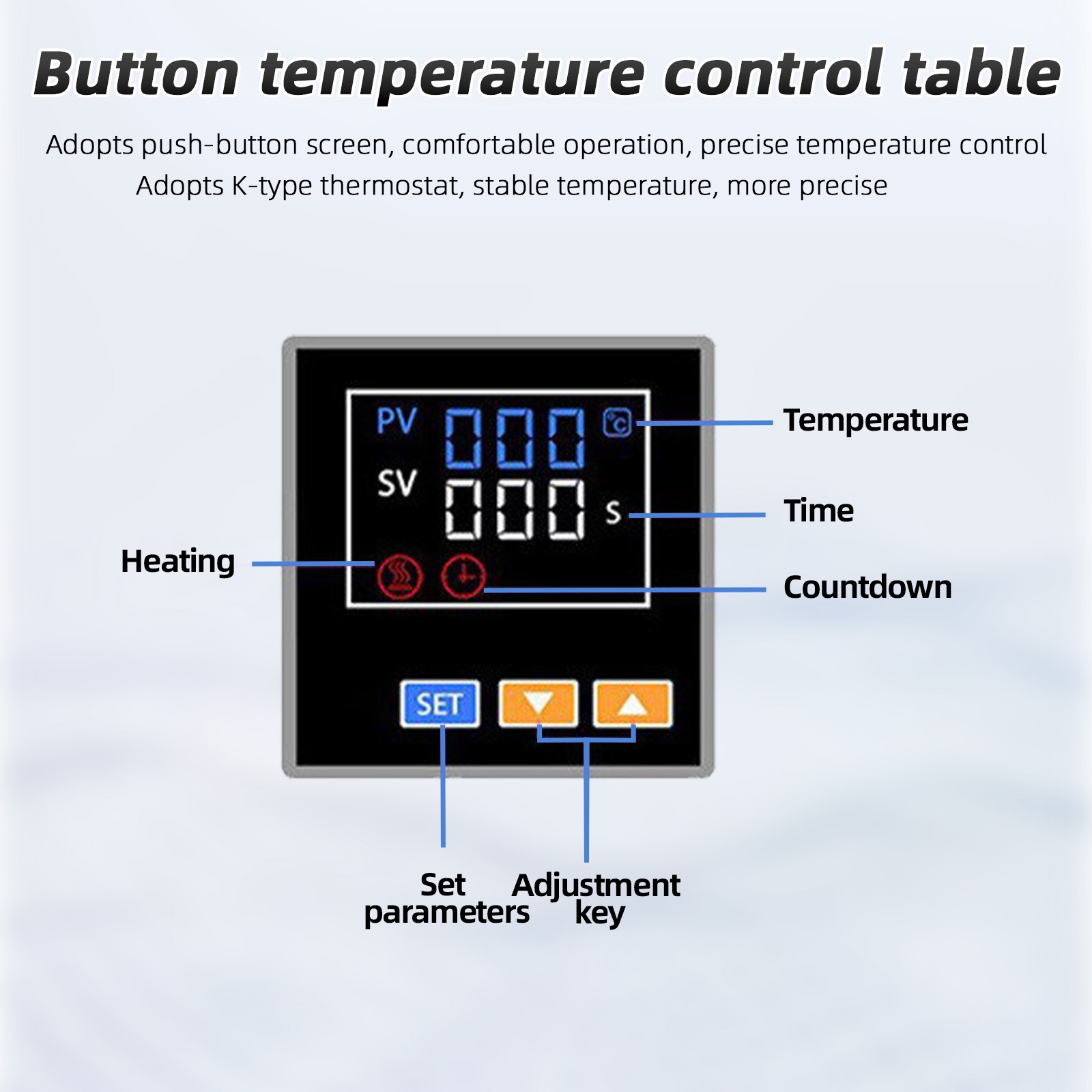 4. Использование управления сенсорным экраном, устройство отображения температуры с высокой точностью, более точное управление температурой, автоматический обратный отсчет, свободное переключение между Фаренгейтом и Цельсием.