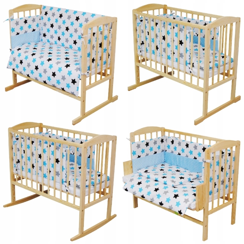 Дополнительная кровать, люлька, детская кроватка, диван и мобильная кровать в одном, изготовлены из 100% древесины сосны I класса. Безопасность кровати подтверждена положительными результатами испытаний на соответствие нормам безопасности и устойчивости детских кроваток.